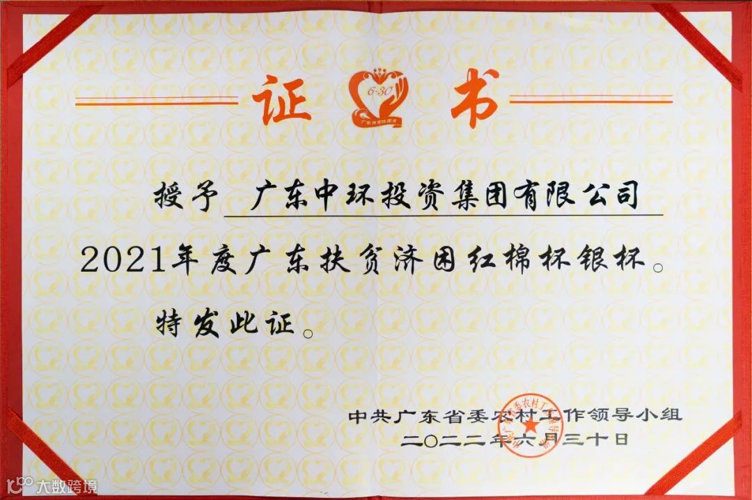 近日,2022年广东扶贫济困日暨全社会助力乡村振兴活动仪式举行,深圳市潮汕商会名誉会长林少华企业广东中环集团荣获“2021年度广东扶贫济困红棉杯银杯”。