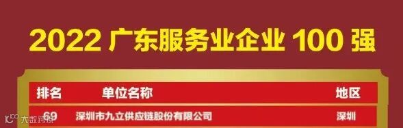 热烈祝贺九立股份入选2022广东企业500强,位居第137名;2022广东服务业企业100强,位居第69名!