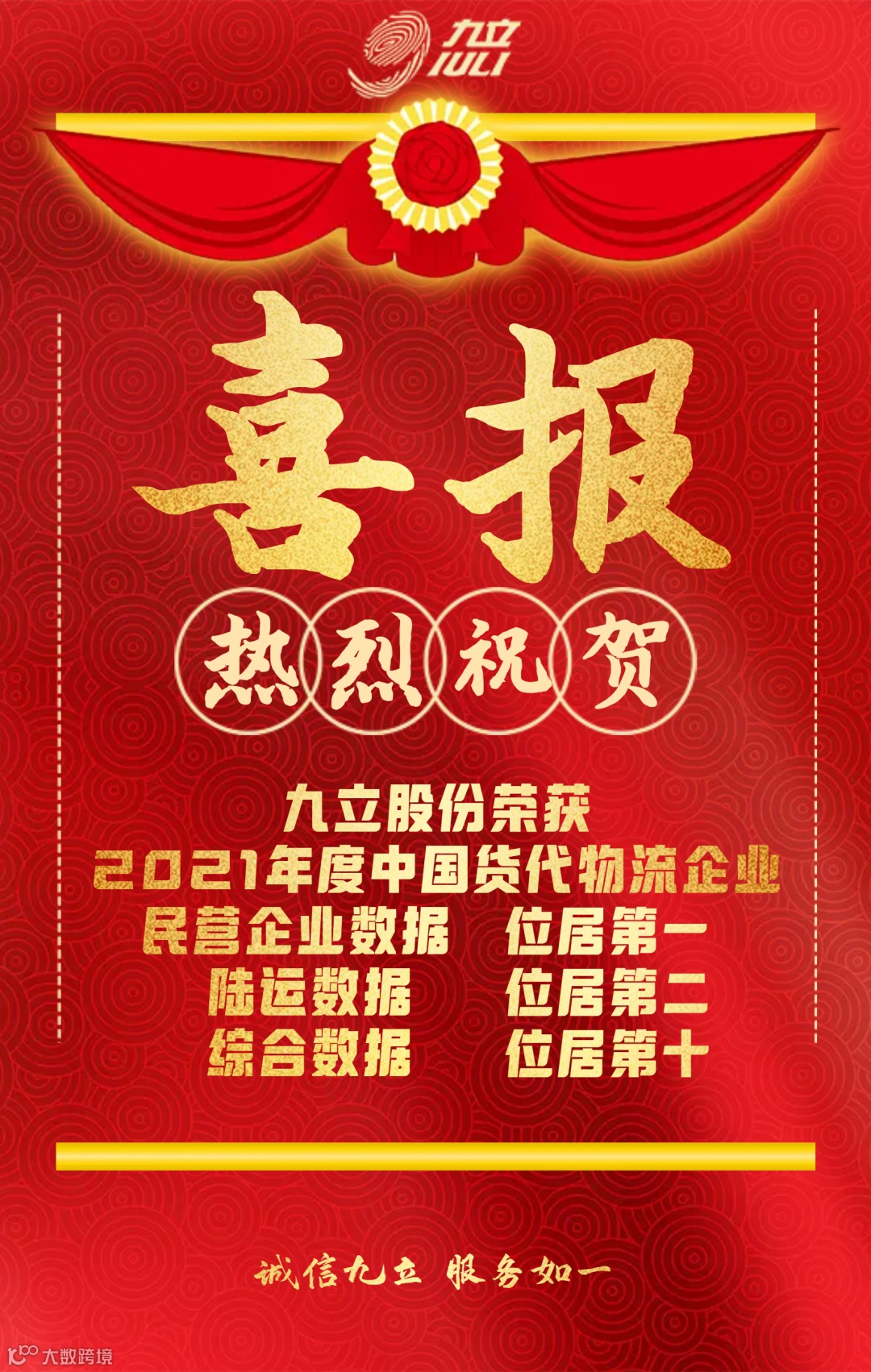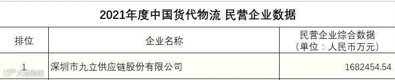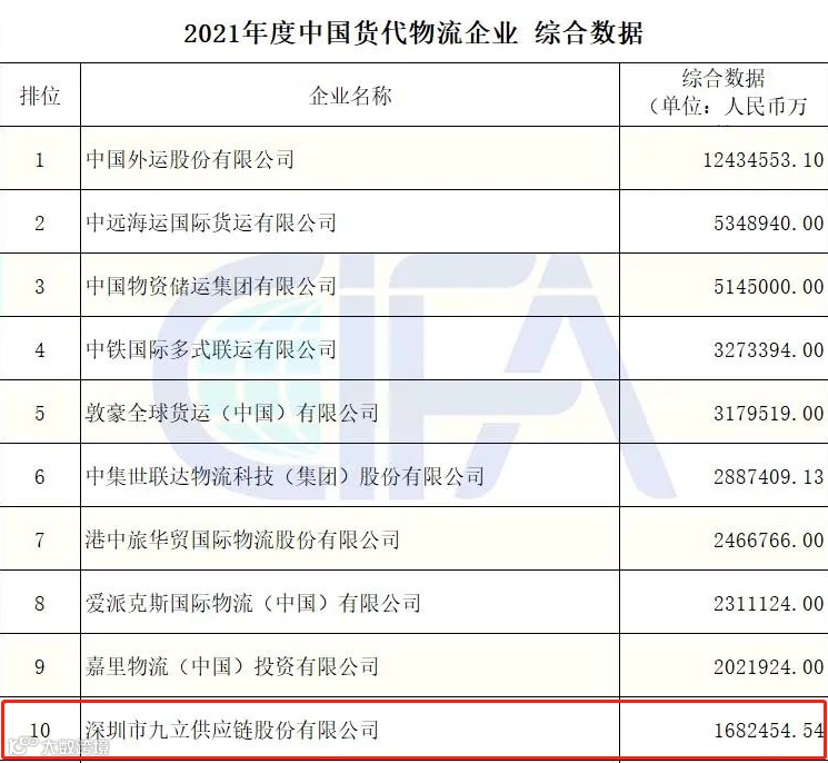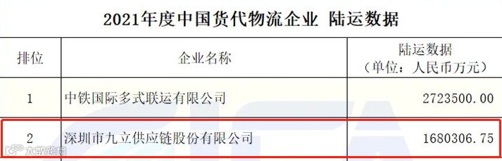 中国国际货运代理协会公布的2021年度中国货代物流企业数据(初公示)名单,热烈祝贺我会常务副会长邹浩企业九立股份荣获2021年度中国货代物流企业民营企业数据第一名;陆运数据第二名;综合数据第十名!