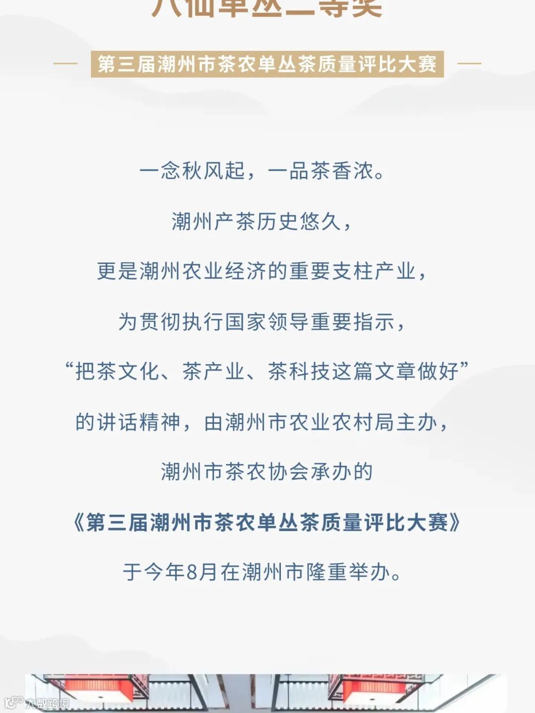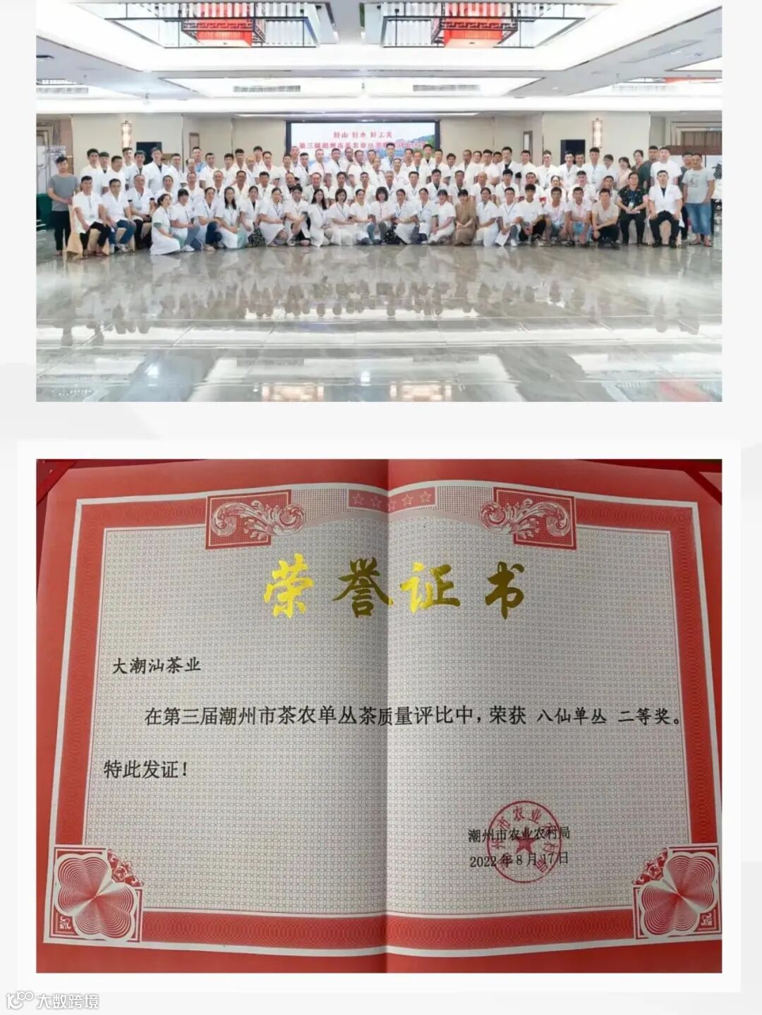 热烈祝贺大潮汕茶业斩获《第三届潮州市茶农单丛茶质量评比大赛》八仙单丛二等奖
