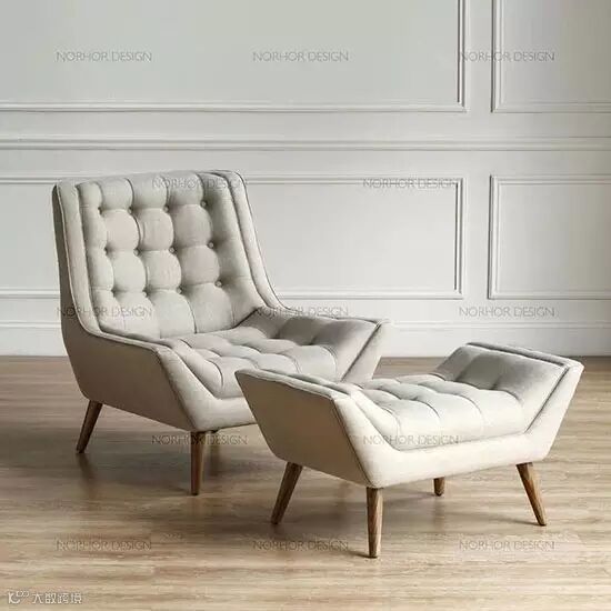 颇有美式乡村气息的一款沙发,木质底座加上布艺坐垫,拥有舒适坐感沙发带有一个配套脚凳,换种姿势休息也是很惬意的~