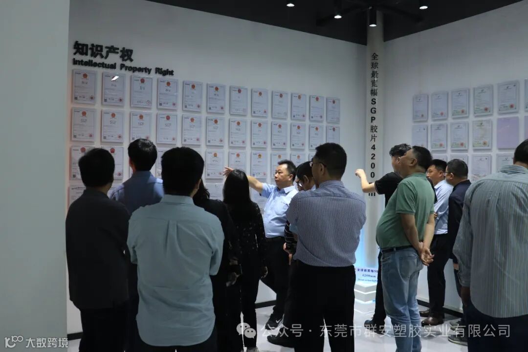 行业标准讨论会顺利召开后,三十余位领导专家移步群安擘画指导SGP行业之宏图。参观期间,领导、专家们都为群安集团的发展提出了许多宝贵的意见。