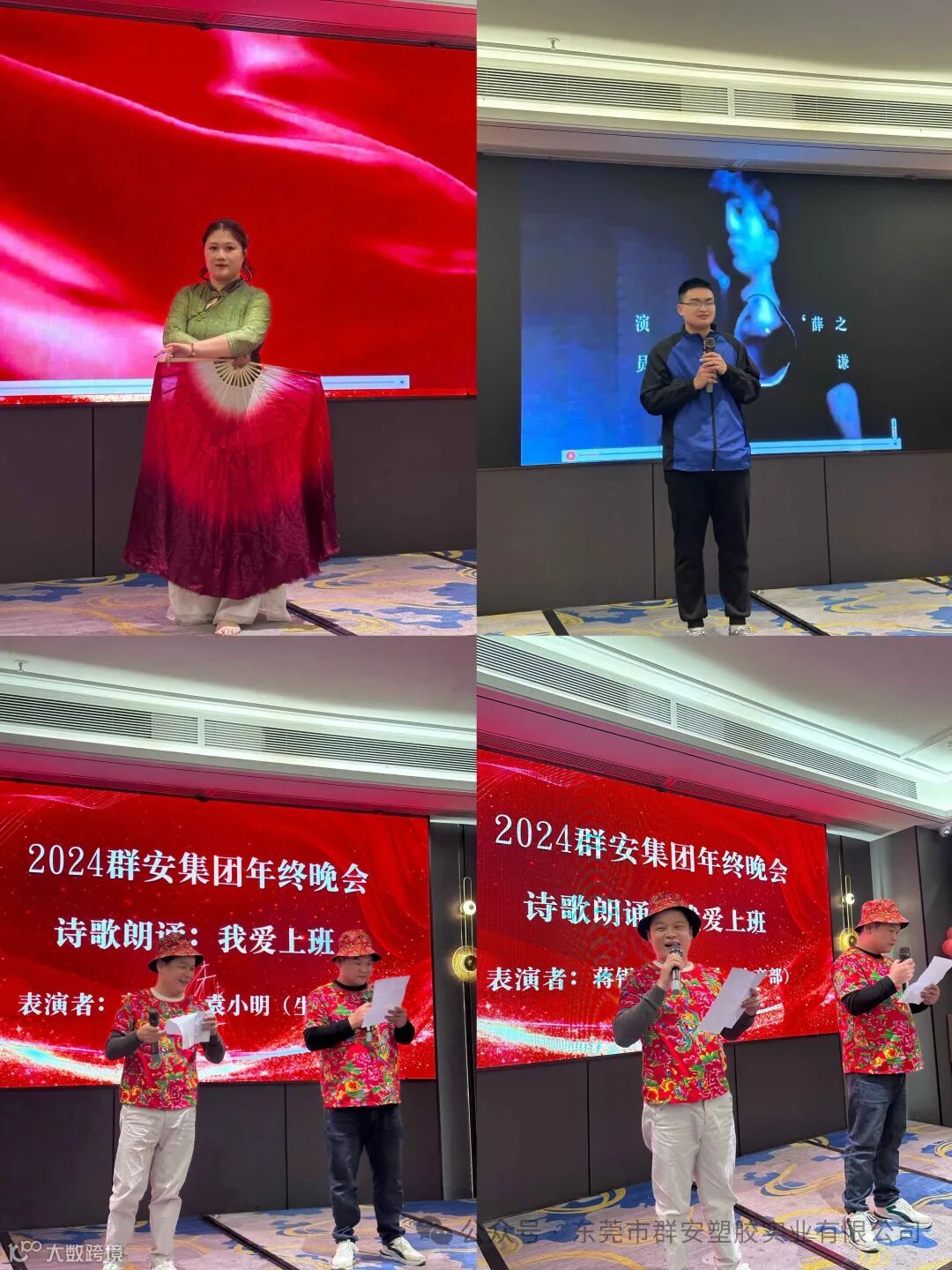 群安员工在晚宴上还通过舞蹈,歌唱,朗诵等不同方式,展现出群安人无限的活力、多才多艺!晚会中的节目令在场的各位都赏心悦目,完全投入到晚会当中!