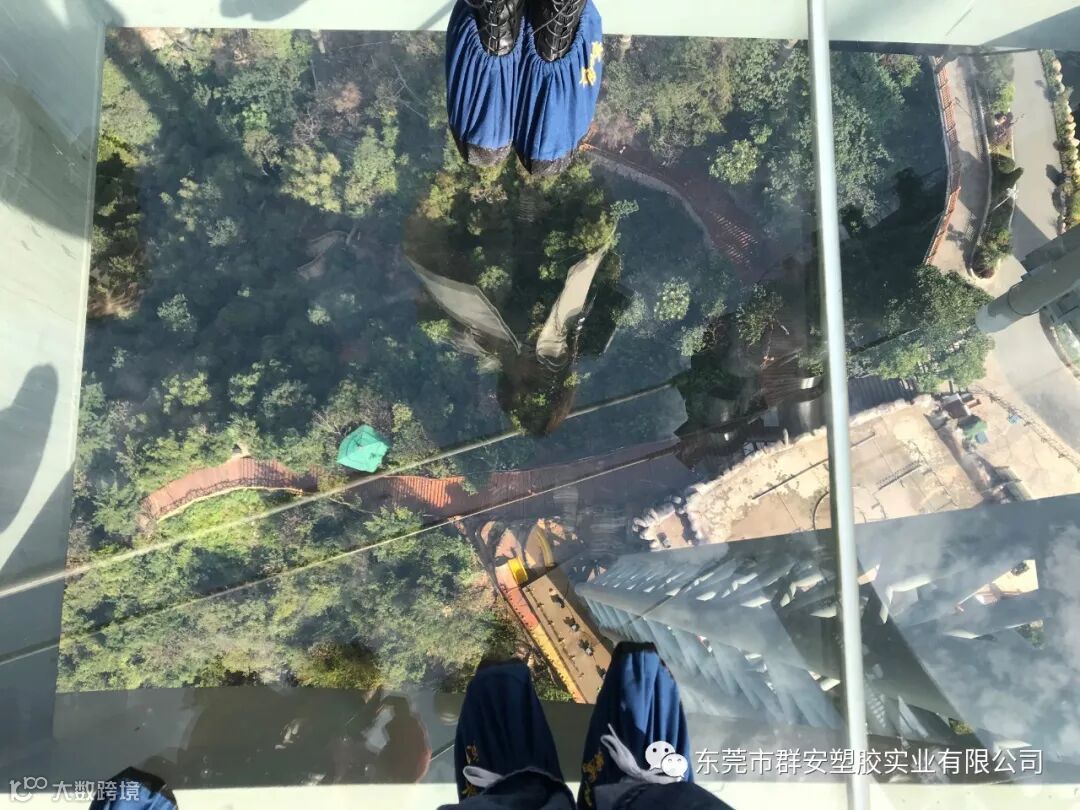 玻璃桥最大的单片玻璃面积达到15平方米,等同于一间卧室的大小,通透度更是99.9%。
