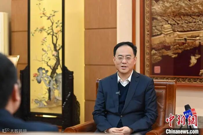 中共潮州市委书记何晓军接受中新网独家专访。 陈楚红 摄