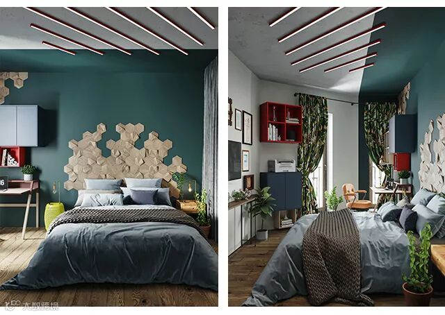 墙面会尽量选择拼色、撞色来做出效果。