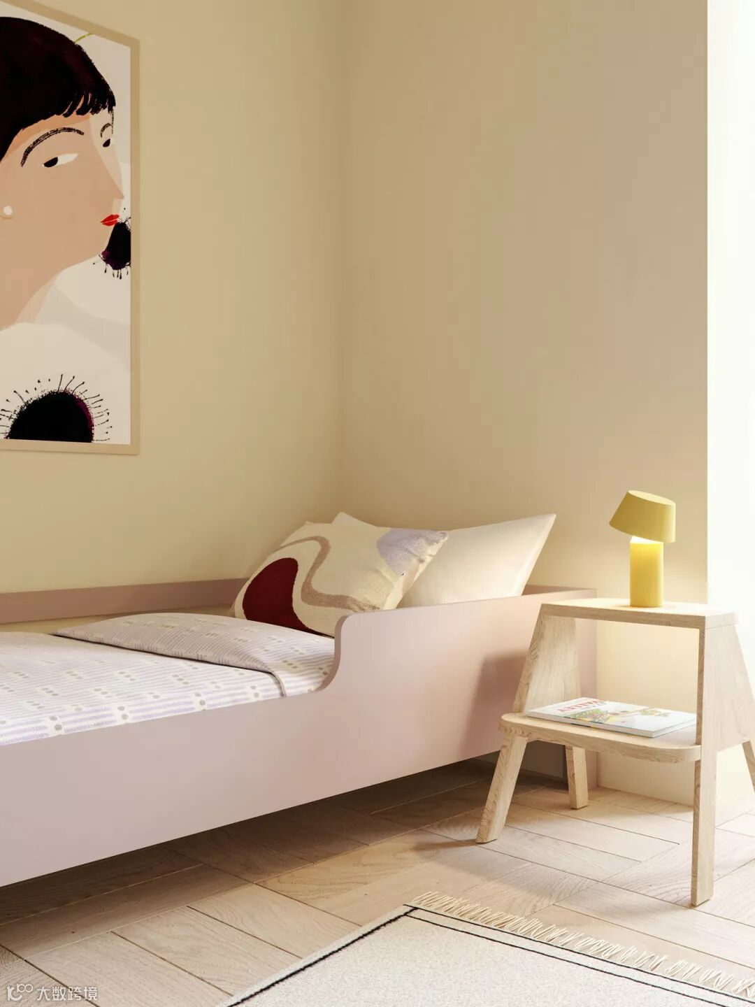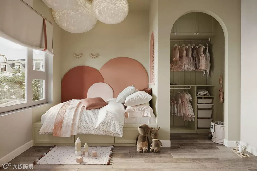 主要利用后期方便更换的布艺、饰品来有营造出孩子喜欢的氛围。