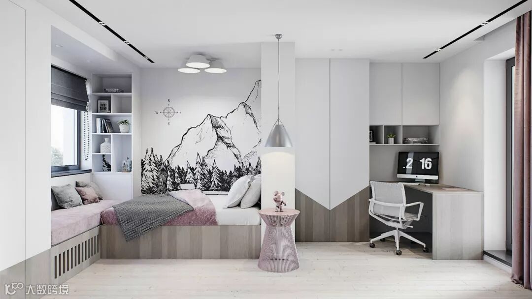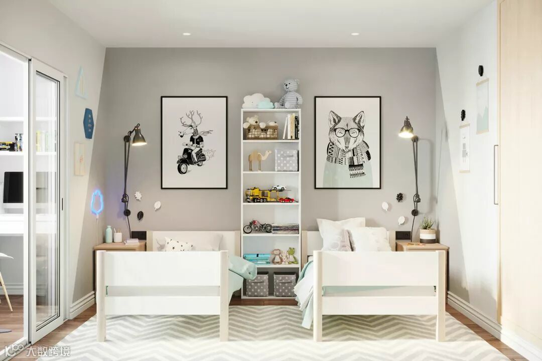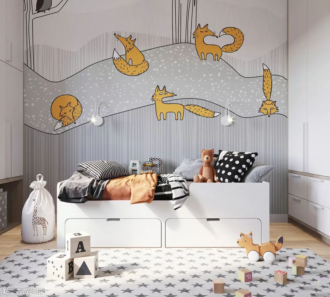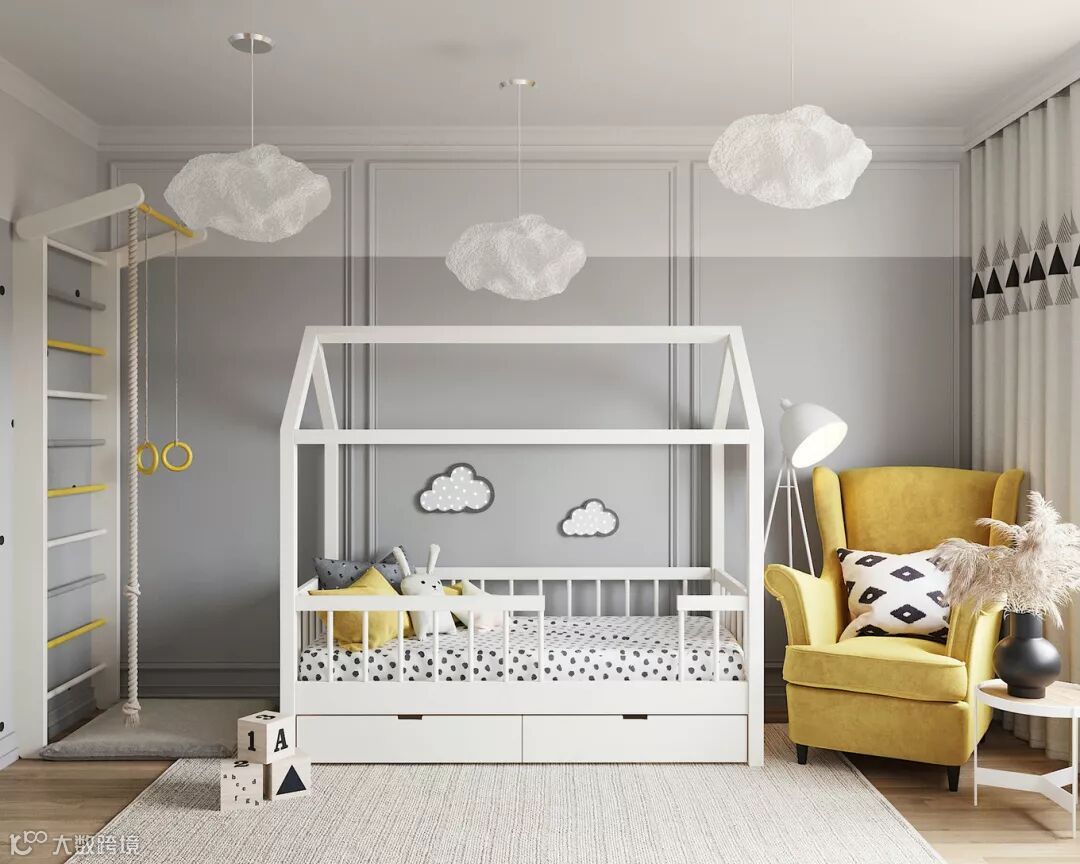 大多数父母在装修儿童房的时候会考虑一个更换周期,避开太过卡通可爱的装修风格,特别是墙面区域。
