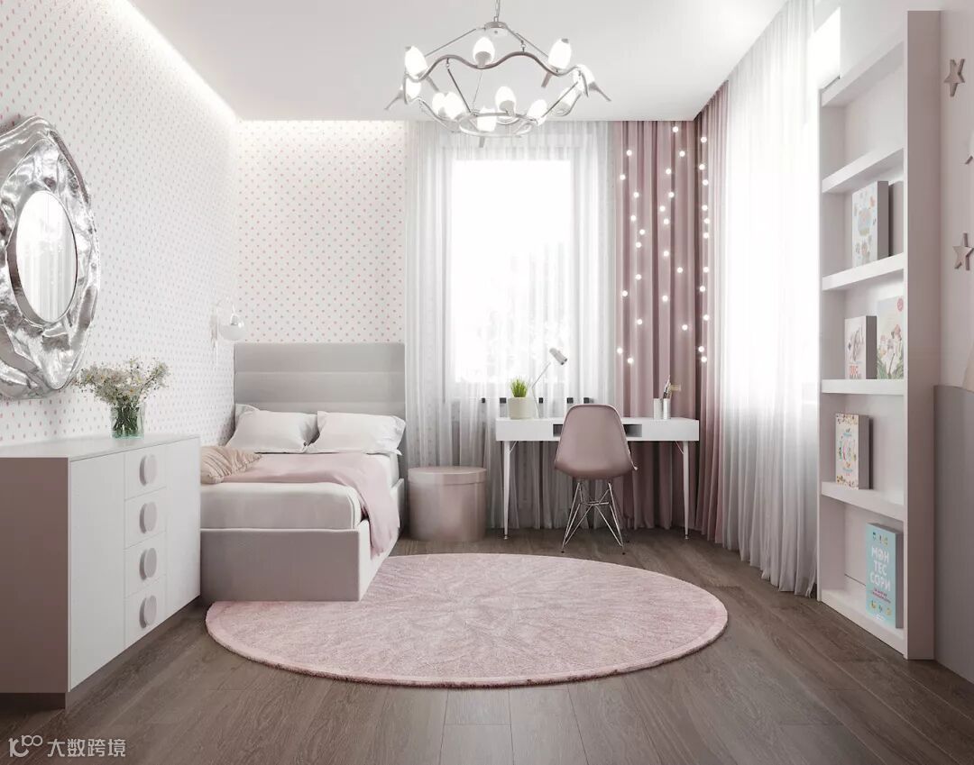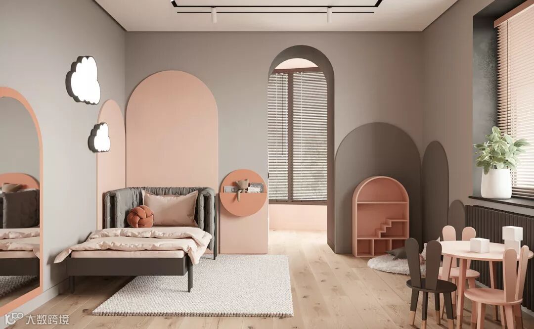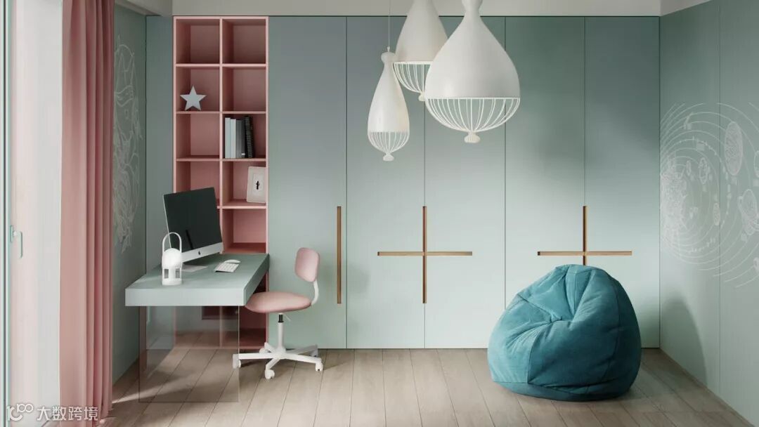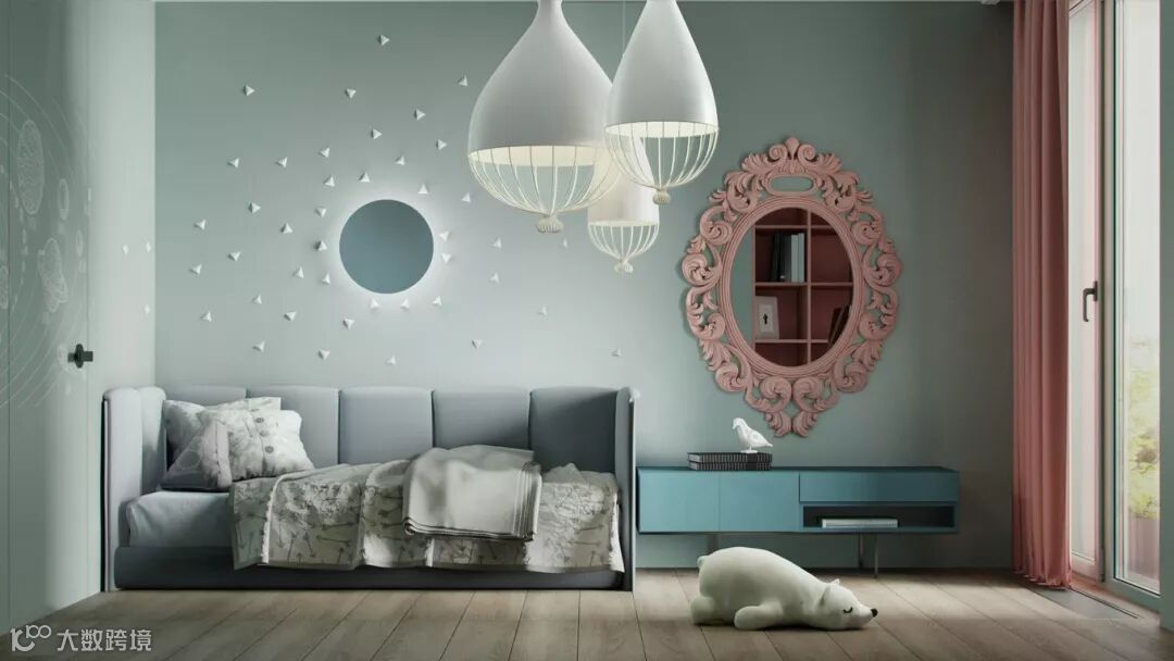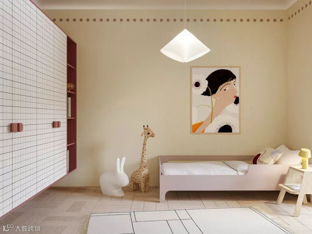 大多数父母在装修儿童房的时候会考虑一个更换周期,避开太过卡通可爱的装修风格,特别是墙面区域。