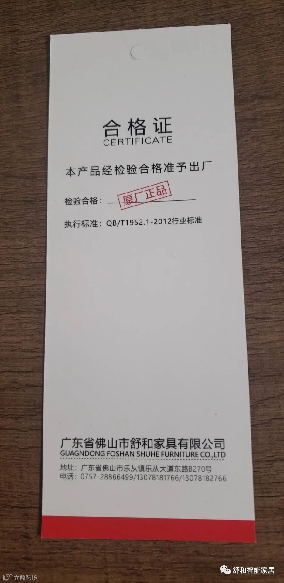 舒和产品合格证