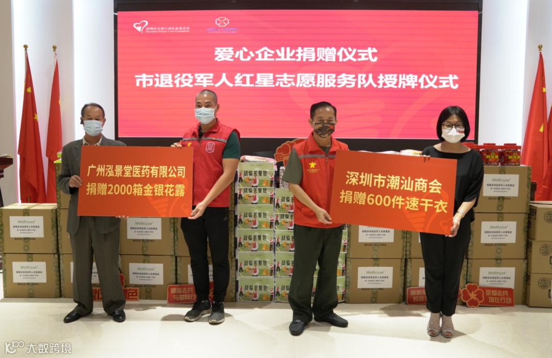 关爱抗疫一线老兵,益呼百应。深圳市潮汕商会常务副会长兼秘书长李楚芬表示,通过关爱基金会的倡议,看到在深圳疫情防控一线退役军人红星志愿服务队作出巨大的贡献,非常感动。军人身上吃苦耐劳、无私奉献的精神值得所有人学习,得知一线志愿者高温日晒天气下穿着防护服,每天挥汗如雨,速干衣能让他们保持干爽更好的投入到一线抗疫服务工作中,“我们迅速决定捐赠600份速干衣,献给深圳市退役军人红星志愿者队让他们在更舒适的情况下更好的开展工作,为深圳的疫情防控工作尽一份力!”