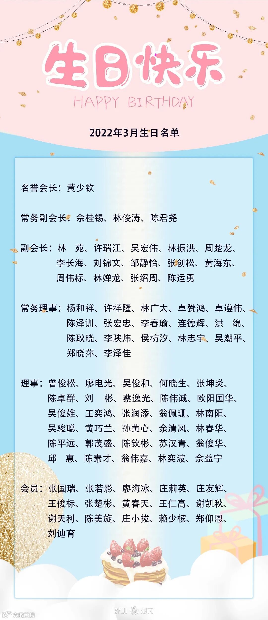 值此寿辰,郑汉明会长、黄育宏驻会会长、吴振城监事长携全体理(监)事会成员恭祝您生日快乐、身体健康、万事如意、阖家幸福!