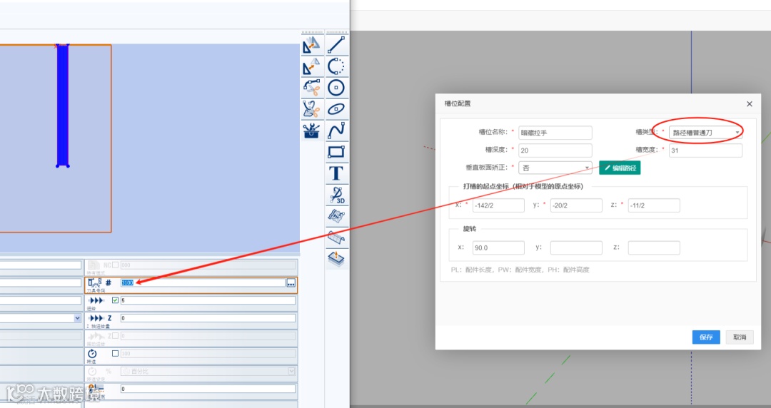 回复:截图中,用户选的是“路径槽普通刀”,,对于选择“路径槽普通刀”的槽,输出到 MPR 时,刀具号=槽宽x100(这里槽宽31,所以输出 3100)