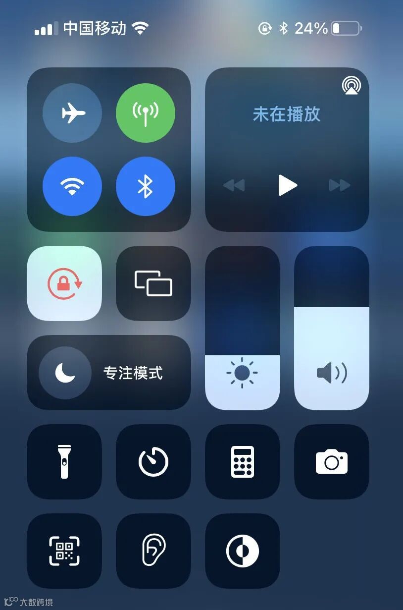 第1步:从手机屏幕的底部向上滑动拉出【控制界面】,点击【AirPlay镜像】选项。