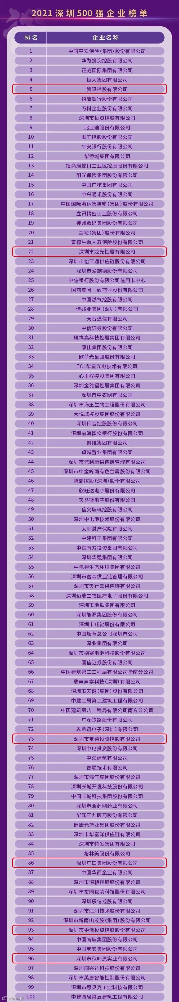 (注:“2021深圳企业500强榜单”的排序工作及《2021年深圳500强企业发展报告》的编撰工作,由深圳市企业联合会、深圳市企业家协会主办并联合国家人文社科重点研究基地一深圳大学中国经济特区研究中心和国际化智库一深圳市汉仑绿色发展研究院完成。)