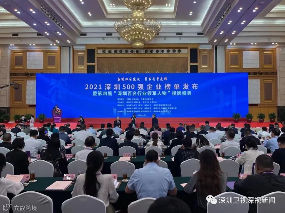2021年10月29日,“奋进双区建设 勇当质量先锋”2021深圳500强企业榜单发布暨第四届“深圳百名行业领军人物”授牌盛典在深圳五洲宾馆举办。