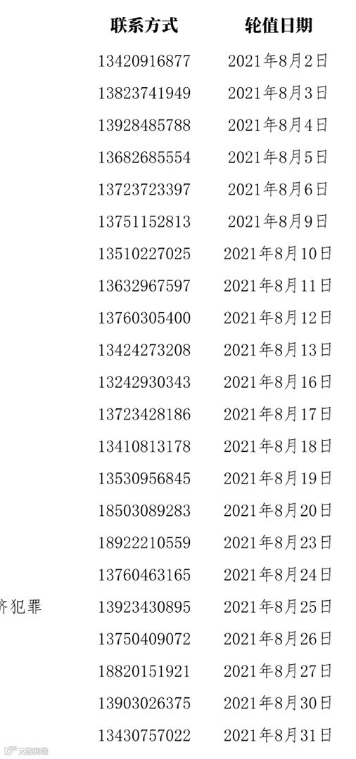 <2021年8月法工委律师值班表>