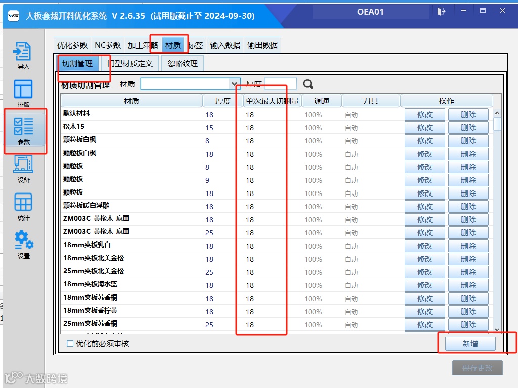 问题:老师,我们25开料的时候是一刀切,怎么把他设置成两刀切