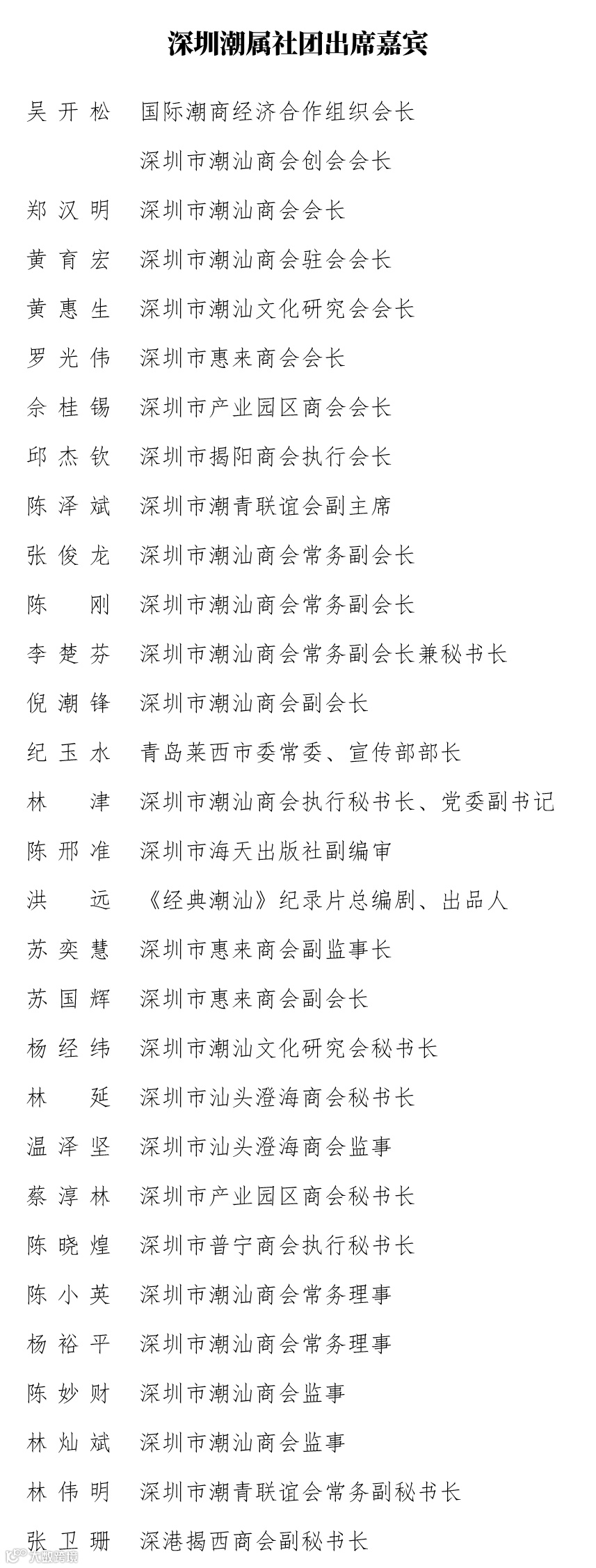 国际潮商经济合作组织会长、深圳市潮汕商会创会会长吴开松,深圳市潮汕商会会长郑汉明、驻会会长黄育宏,及其他深圳潮属社团会长、潮属校友会、在深潮籍文化界人士、广东省电影家协会肖小青专职副主席等影视行业专家欢聚一堂,出席了本次电影首映礼。