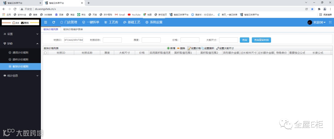 我把工厂自己的板材价格等信息录入到全屋E柜,下载下来的报价单还是没有价格。是不是还要自己设置公式,系统才能去运算?可是我看全屋E柜里面自带的板材也没有公式,价格却能出来。
