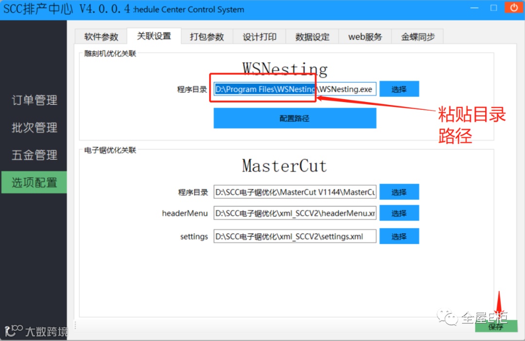 四.打开SCC,粘贴Nesting.exe路径,注意只修改红框部分