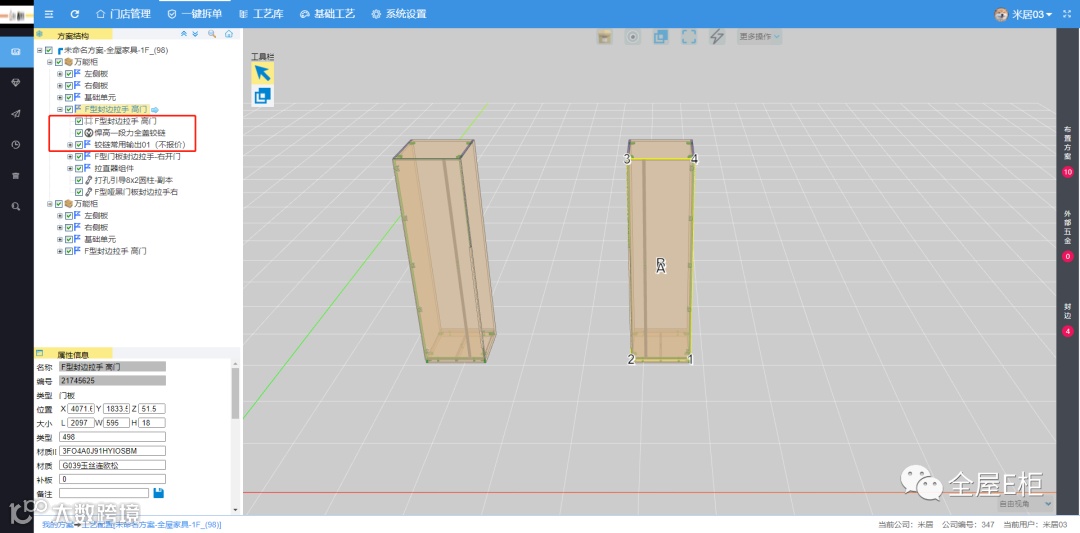 酷家乐里面是百隆铰链,输出到E柜是悍高铰链?