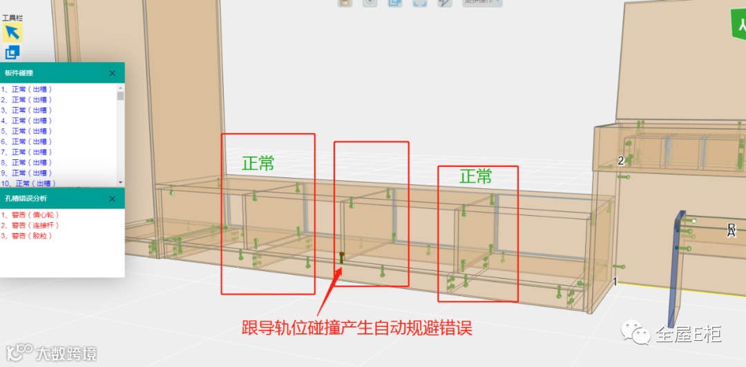 分析原因--酷家乐生成json输出时,位置坐标或尺寸有浮点或精度误差,所以极少情况下会导致五金碰撞,在五金设置自动规避情况下,会规避产生错误。