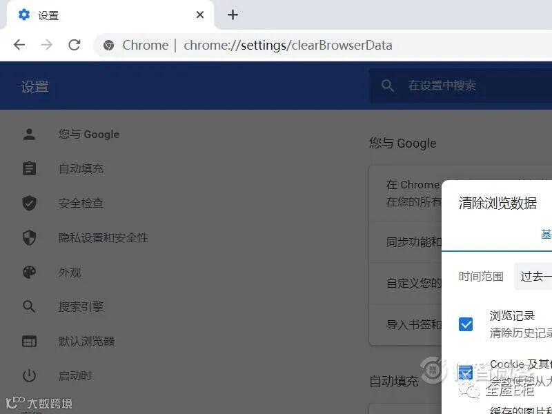 5、或者输入打开,或者在网址框输入chrome://settings/clearBrowserData快速打开。