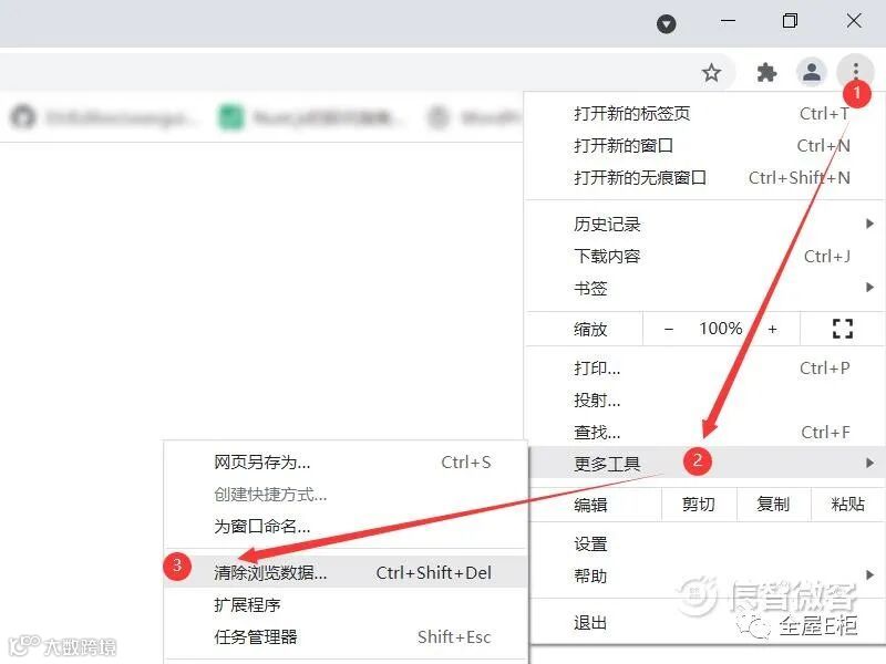 3、点击清除浏览数据,在更多工具的弹窗中选择点击清除浏览数据。