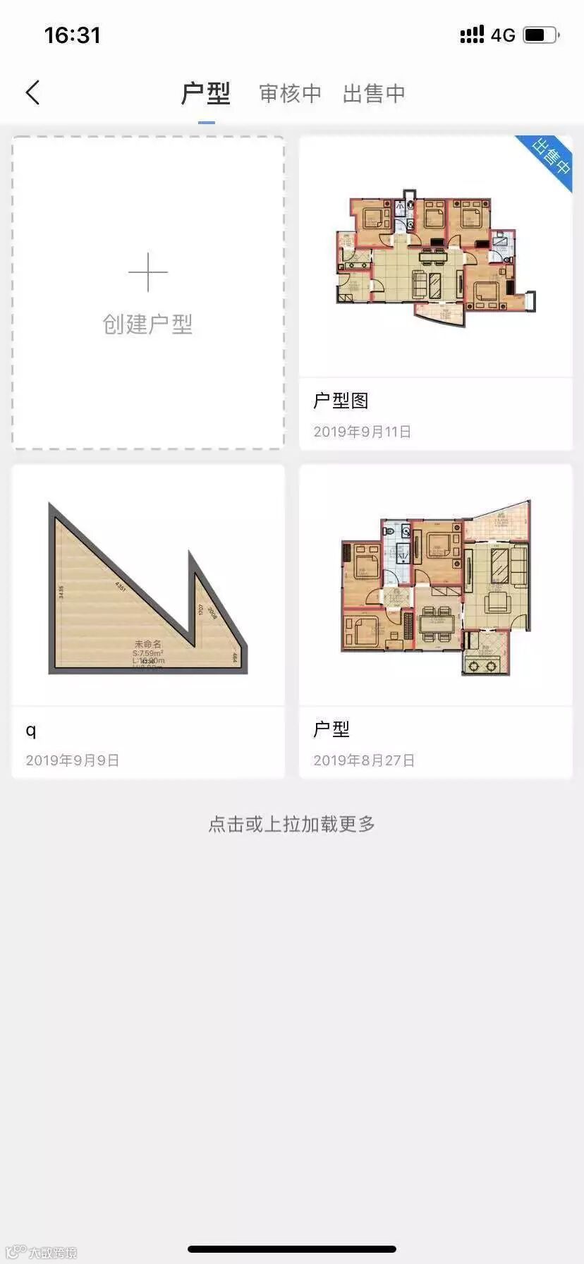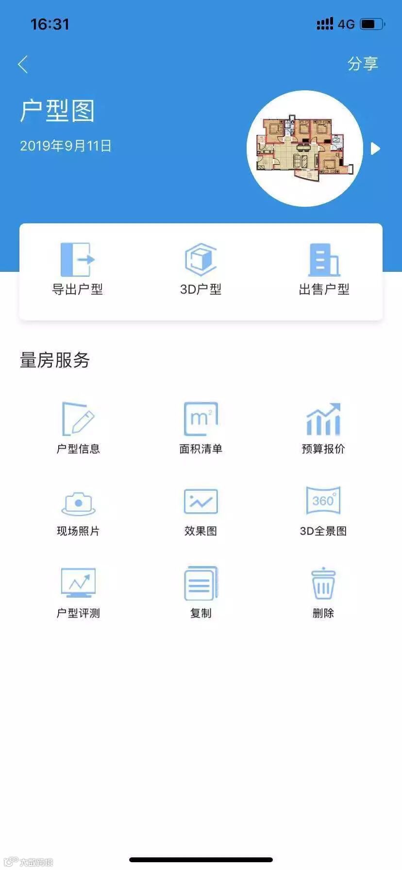 我的户型:这里是管理户型图的地方,可以查看自己绘制过的户型图。点击户型图可查看面积清单,预算报价等更多户型图消息,同时还可进行修改,上传,复制,删除等操作。