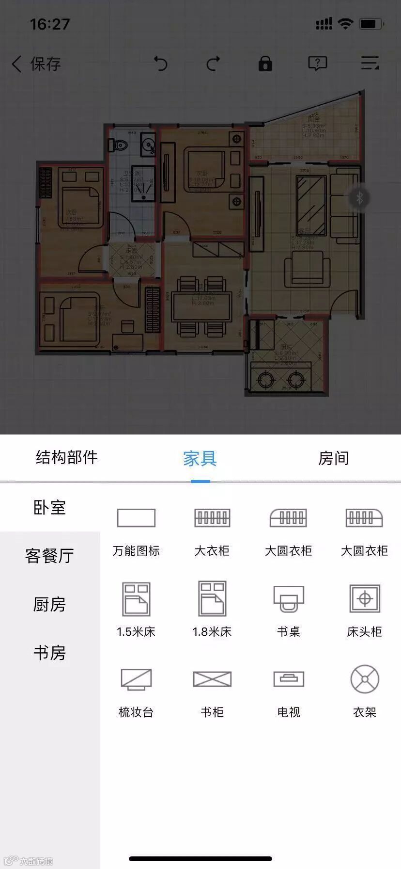 3. 房间部件模块丰富。丰富多样的模块添加,门窗,柱子,楼梯等,各式家居供您选择。还有丰富的部件模板,用户可根据自身需求调取该模块,快速组合成户型,完成空间格局绘制。