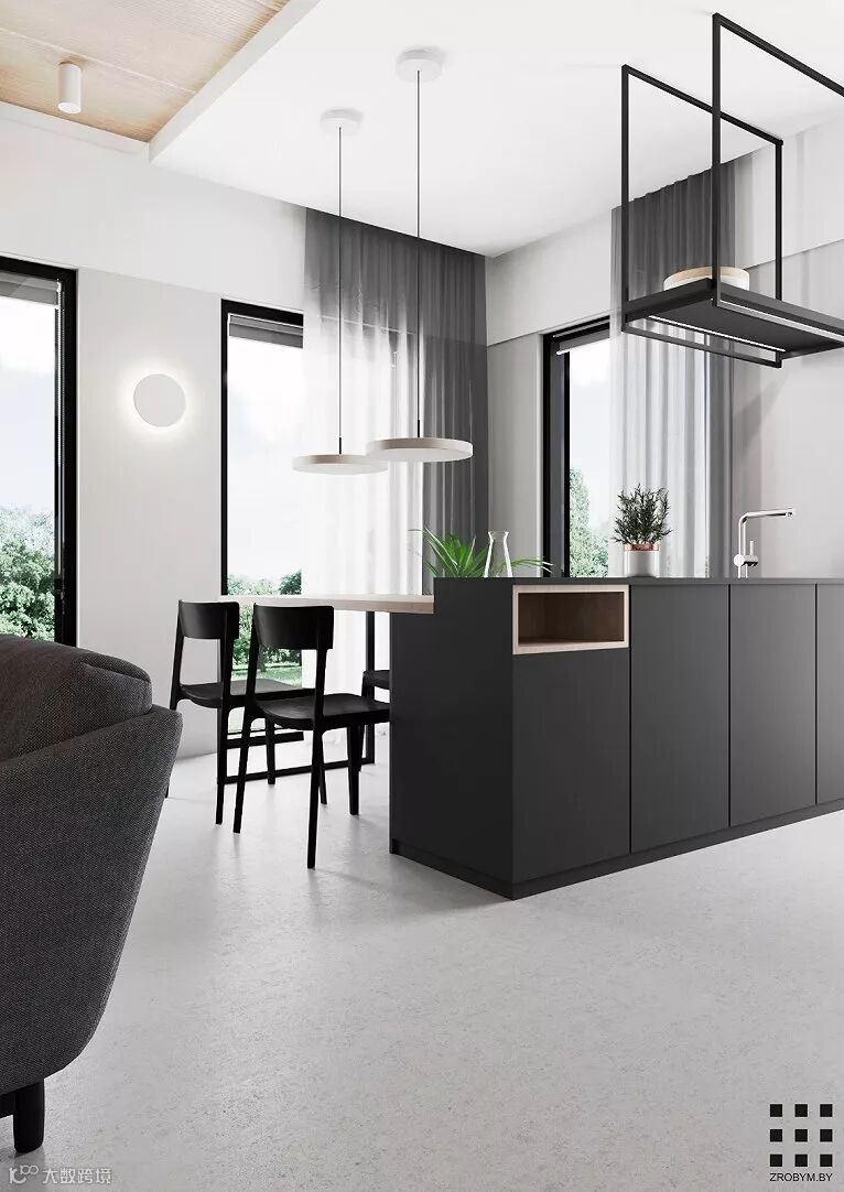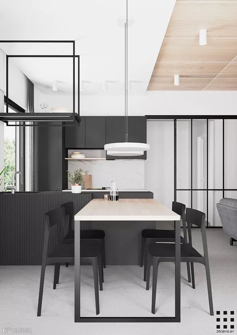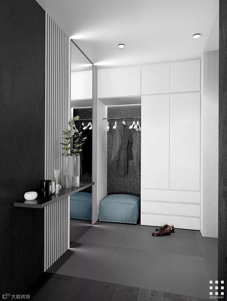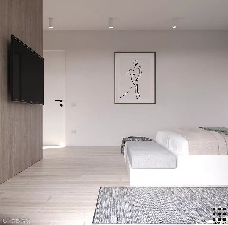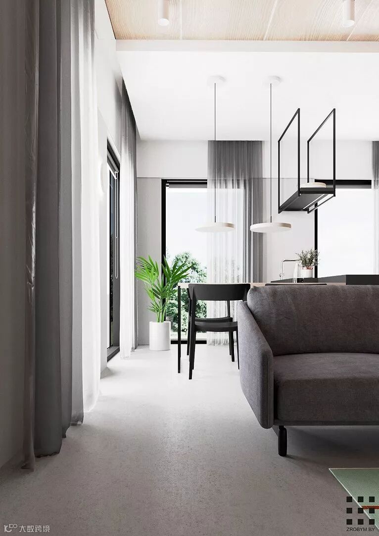 明斯克90m²极简北欧公寓,用黑白色彰显极简风格以空间元素增添艺术风味,整个空间显得安静却又不失自然的气息。