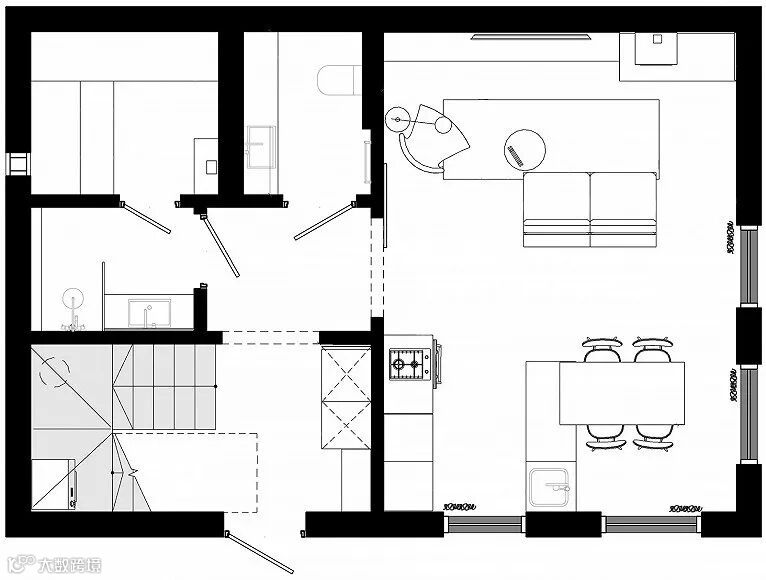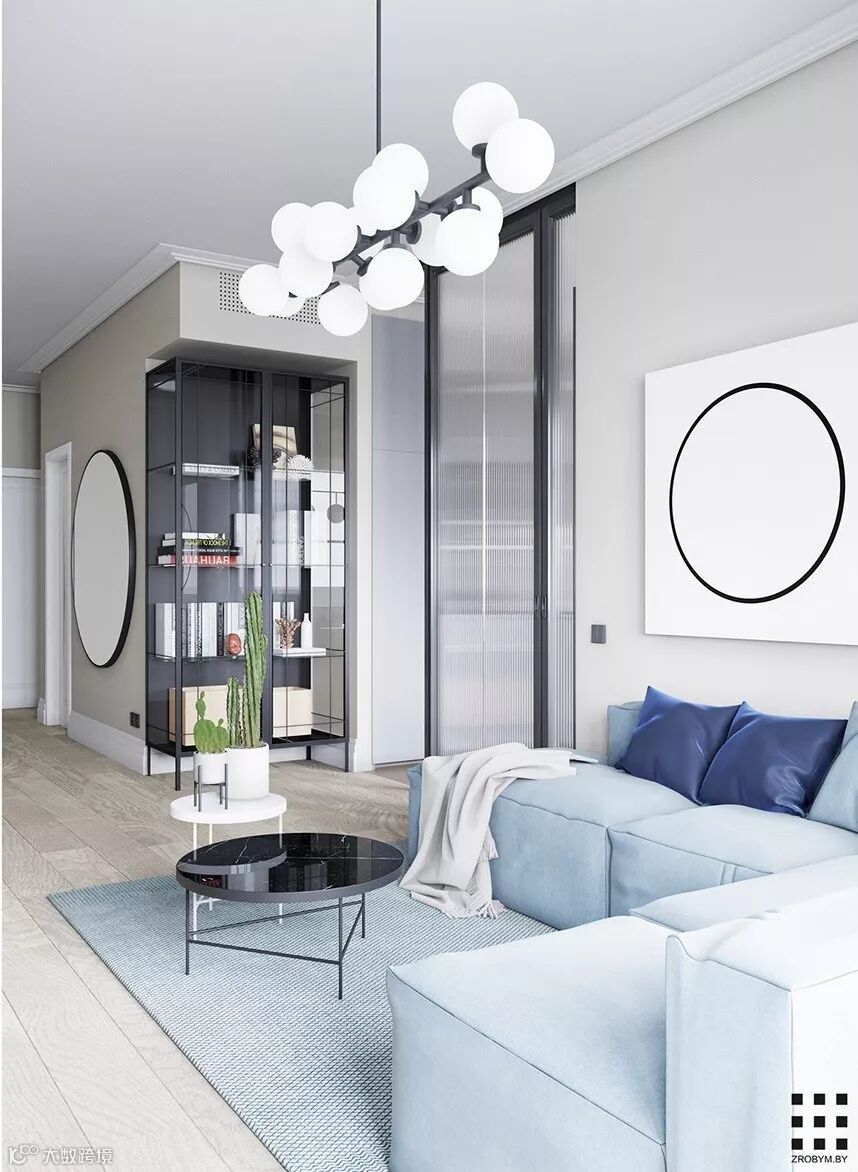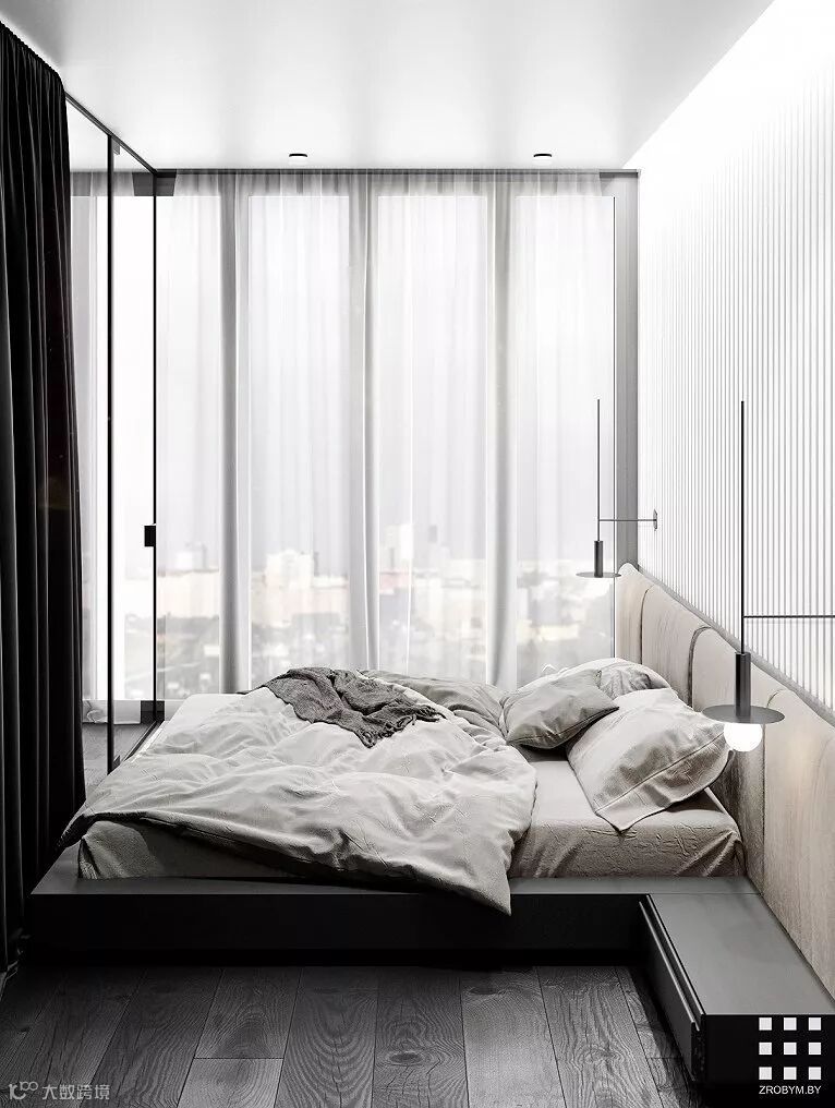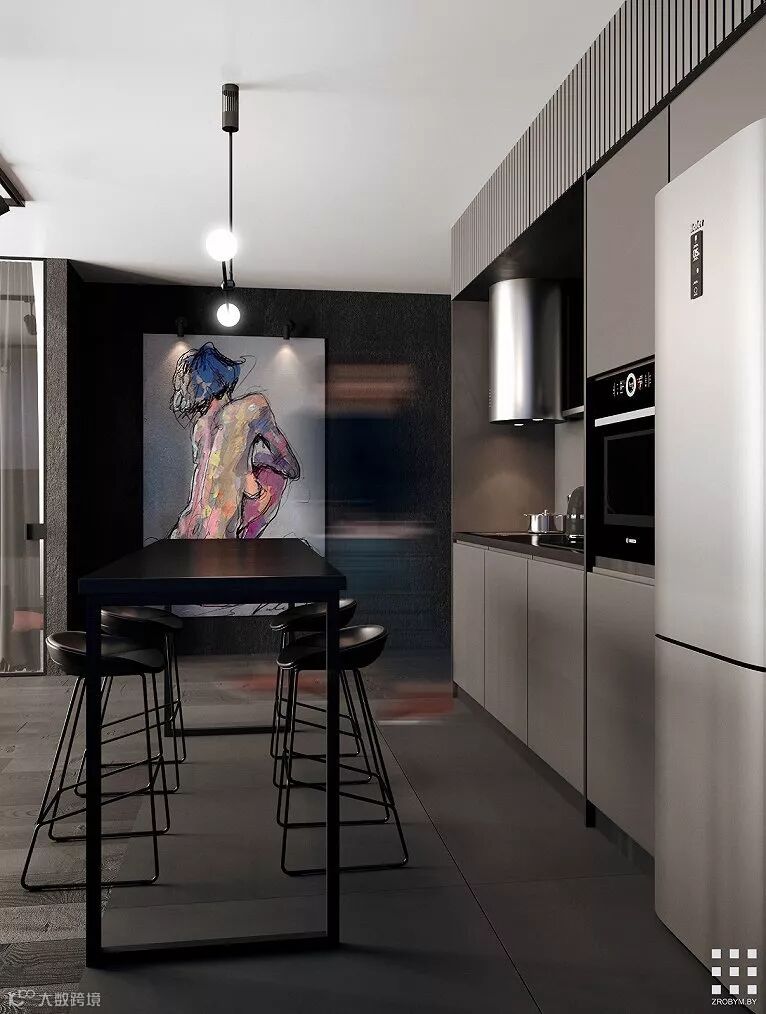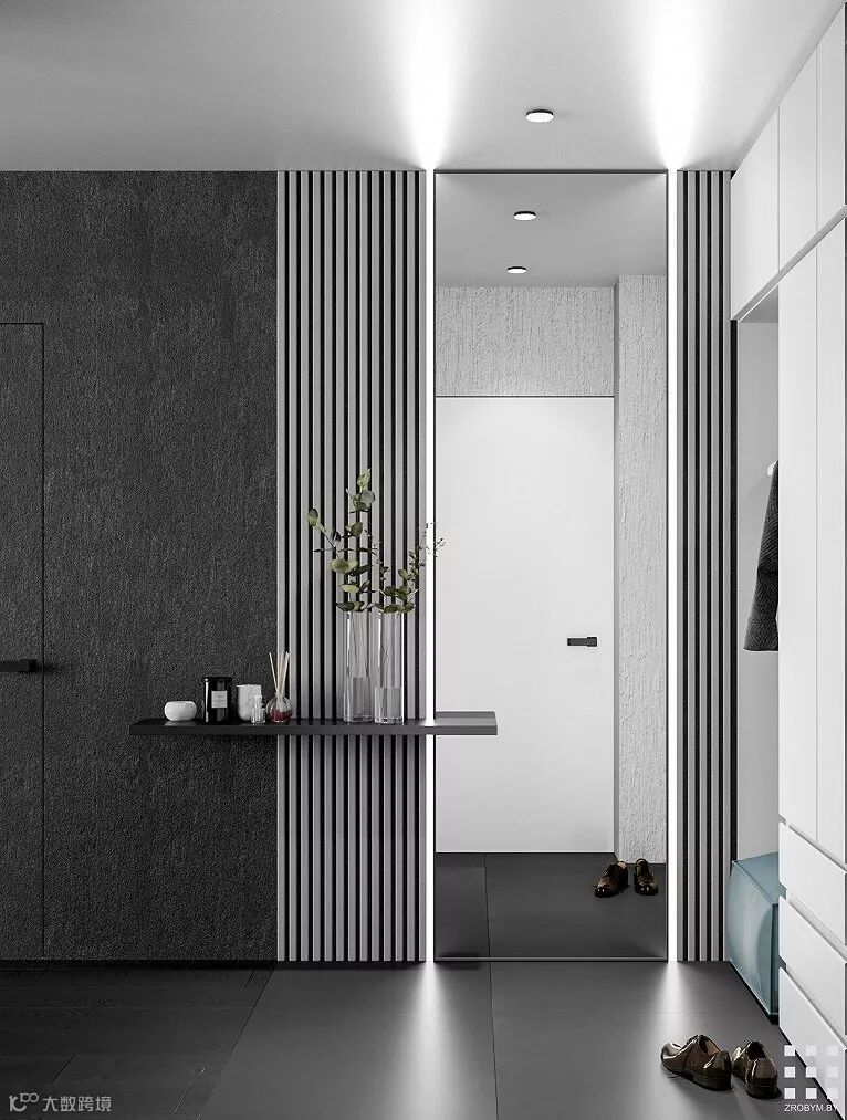 明斯克90m²极简北欧公寓,用黑白色彰显极简风格以空间元素增添艺术风味,整个空间显得安静却又不失自然的气息。