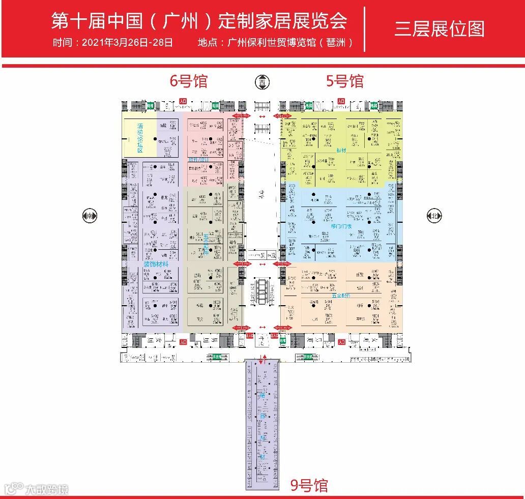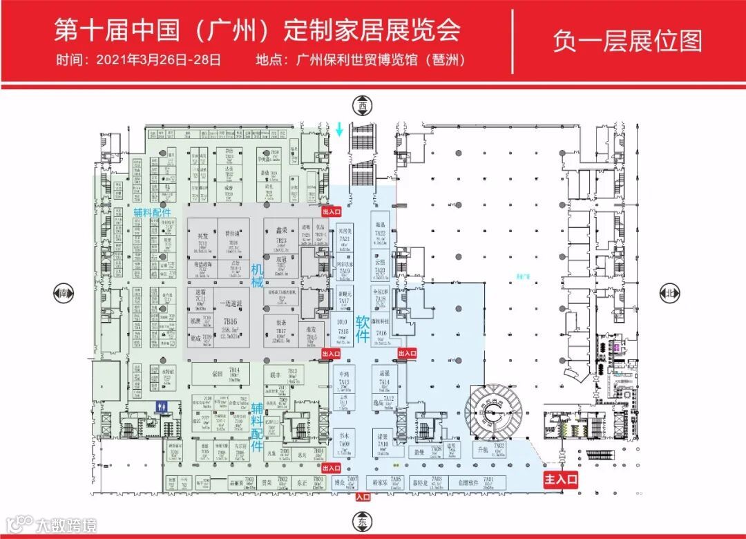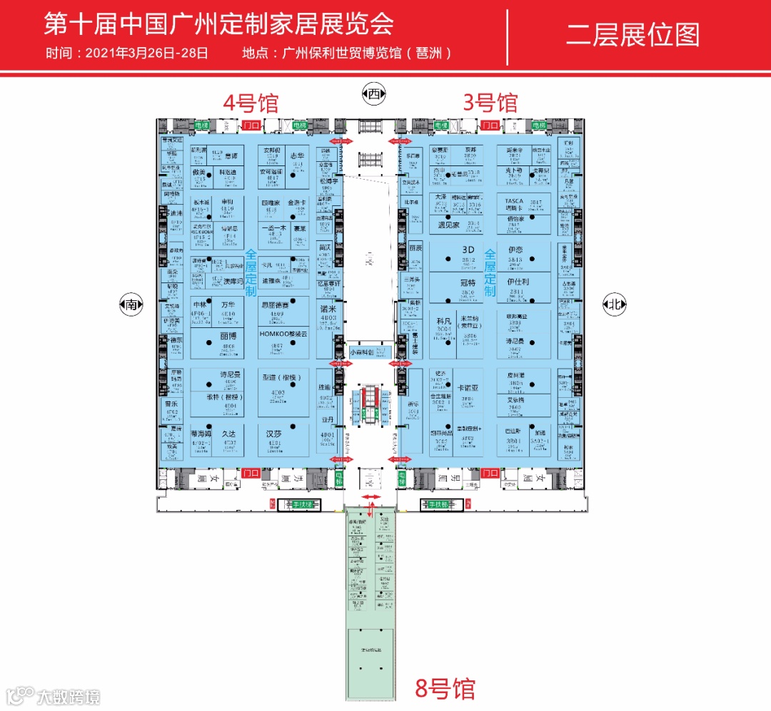 下面让我们走进展馆,提前看看展位分布图。这是展馆一层平面分布,主流定制家居品牌的竞技场。(以下图片放大可看)