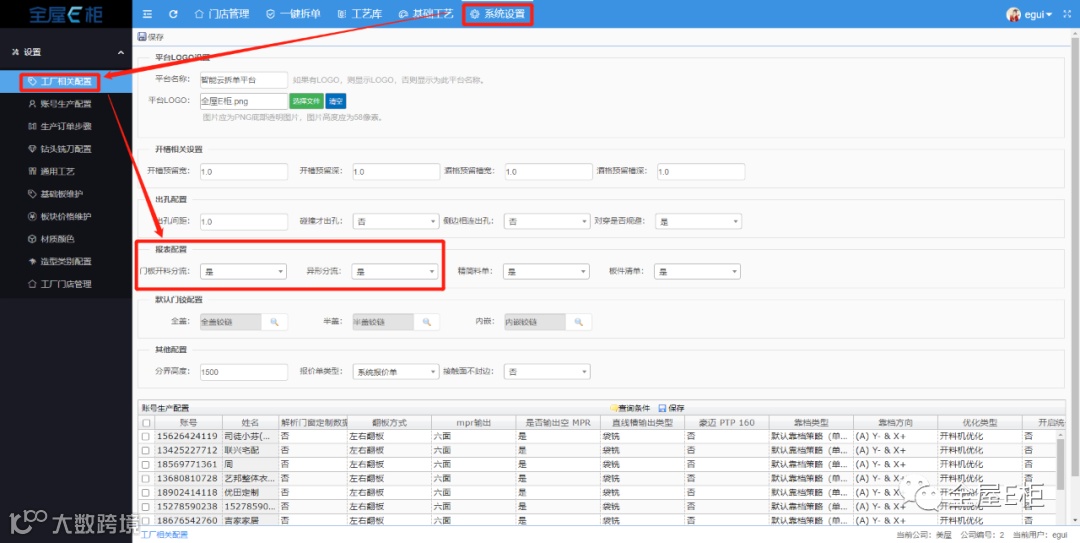 拆单平台-系统设置-工厂相关配置-报表配置,可配置: