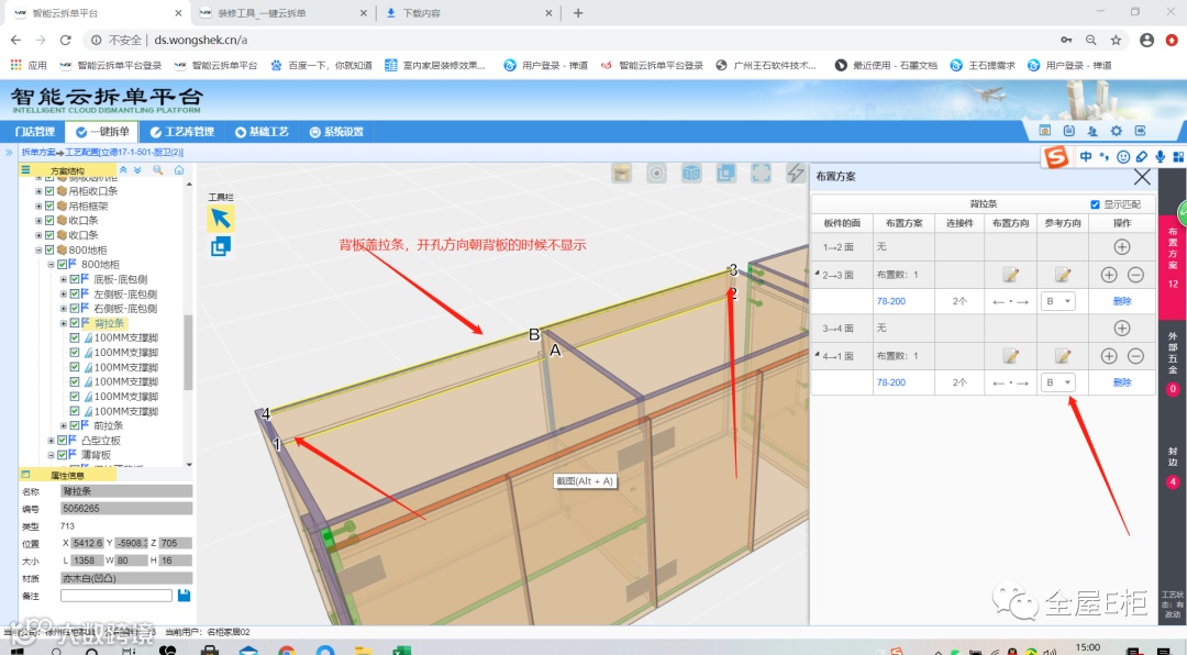 这里有个孔位方向的问题,背板盖拉条。拉条上的孔位方向是背板就不显示孔了。板是4mm的板。