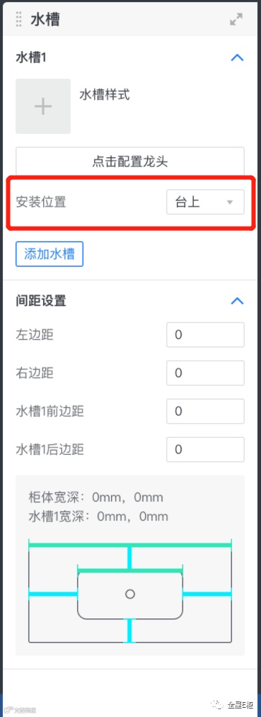 2.台盆/水槽/灶台生成时,新增编辑项“安装位置”,若对象上无台上、半嵌、台中、台下轮廓,则支持选择台上、半嵌、台中、台下。若对象上至少存在一个轮廓,则可选为编辑中含有的轮廓类型;