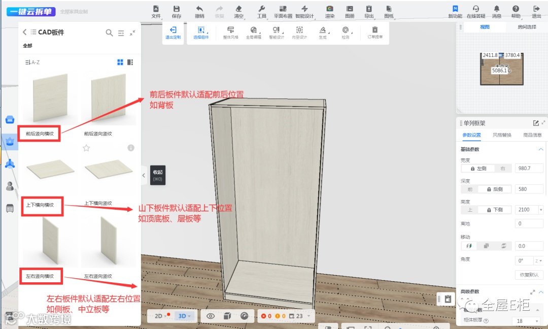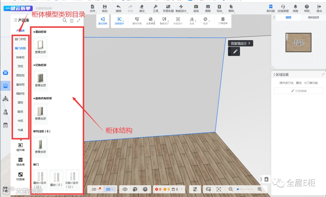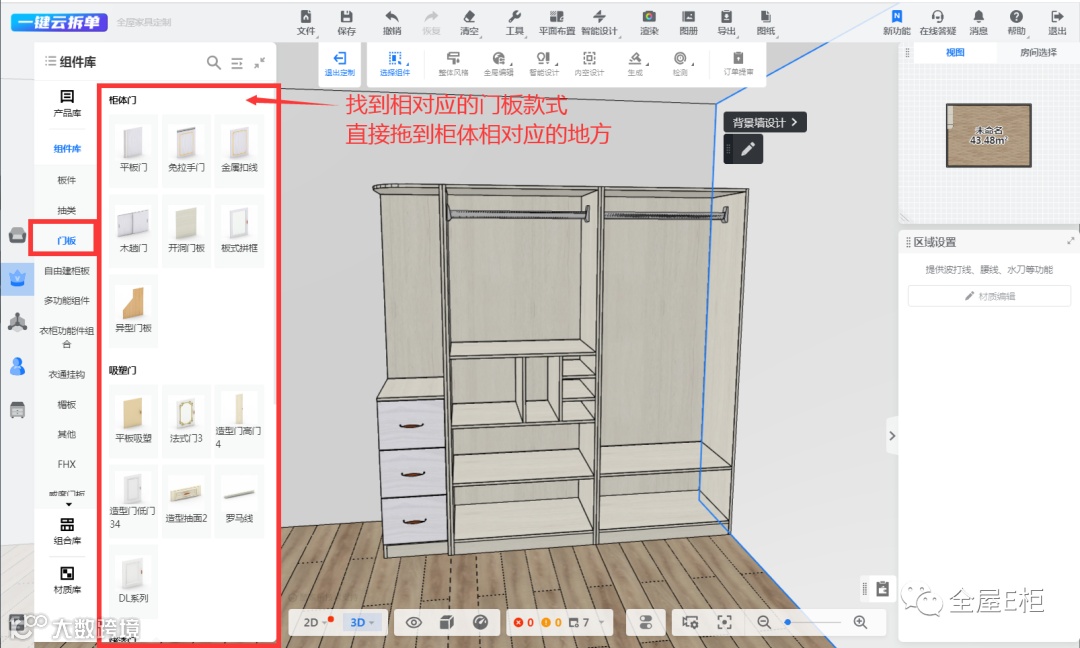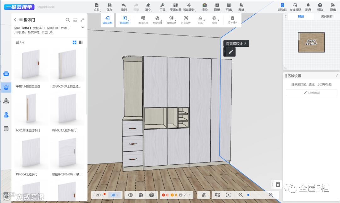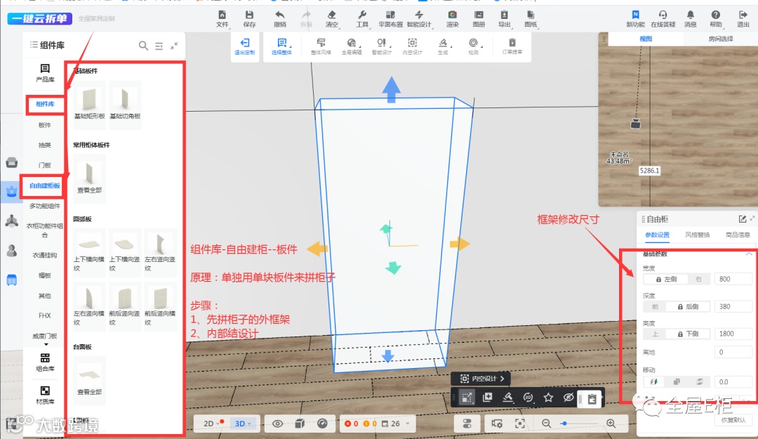 3.0 设计步骤:柜体框架--组件(内部结构)---门板--风格样式(门板款式、材质颜色)