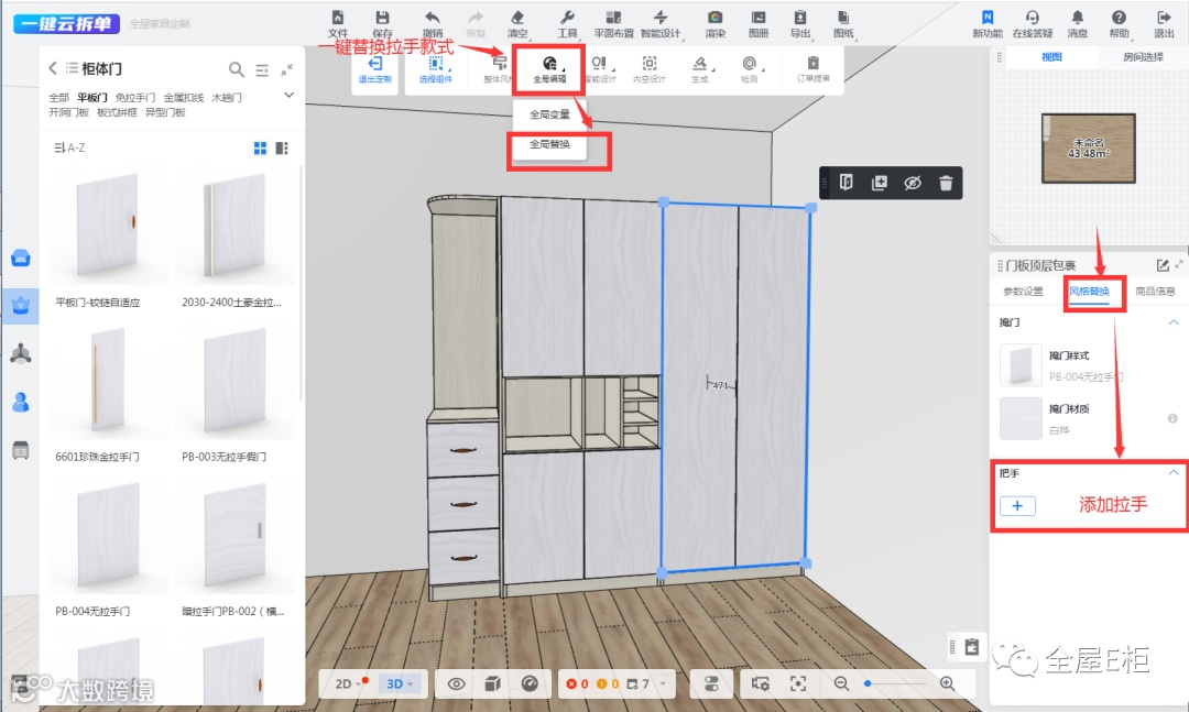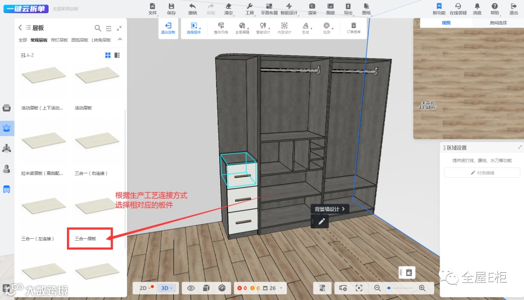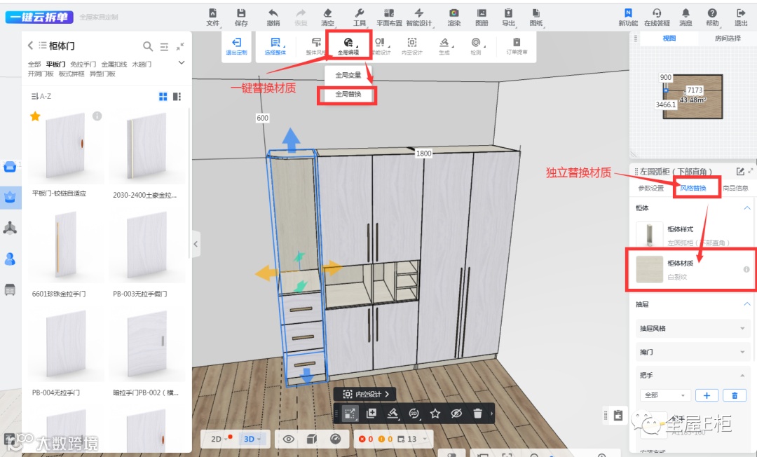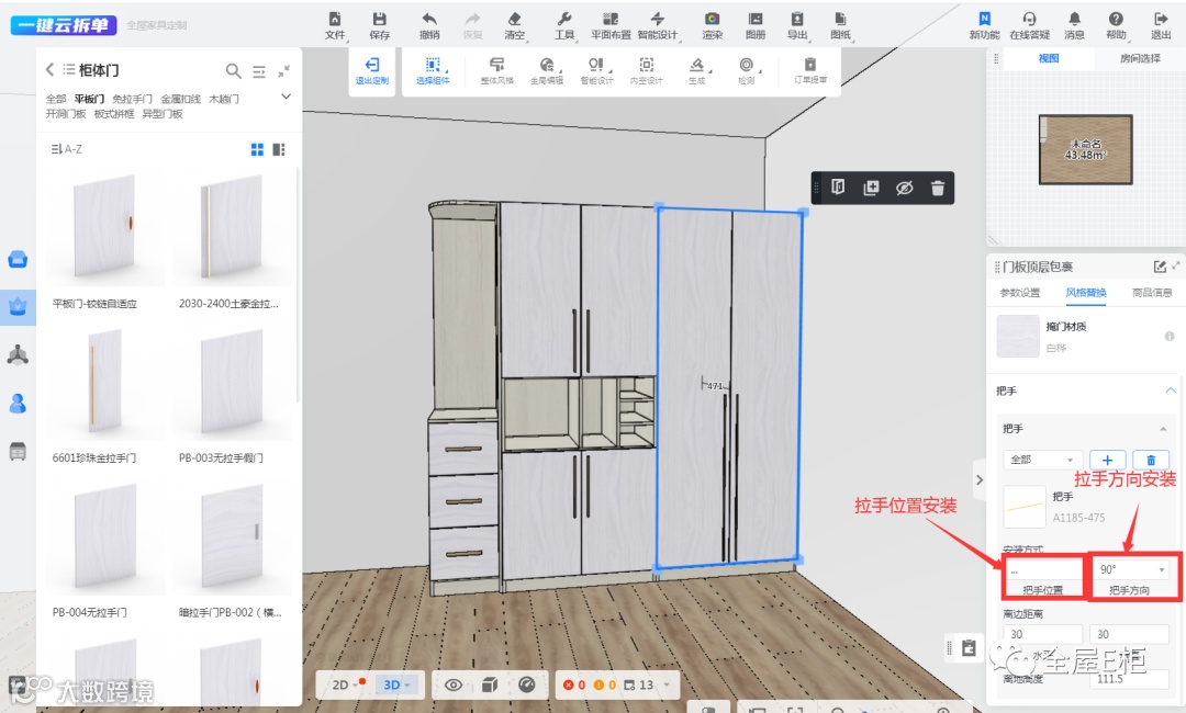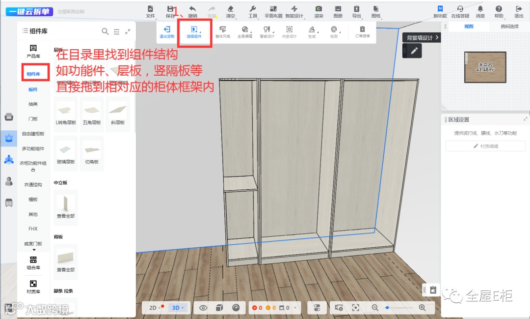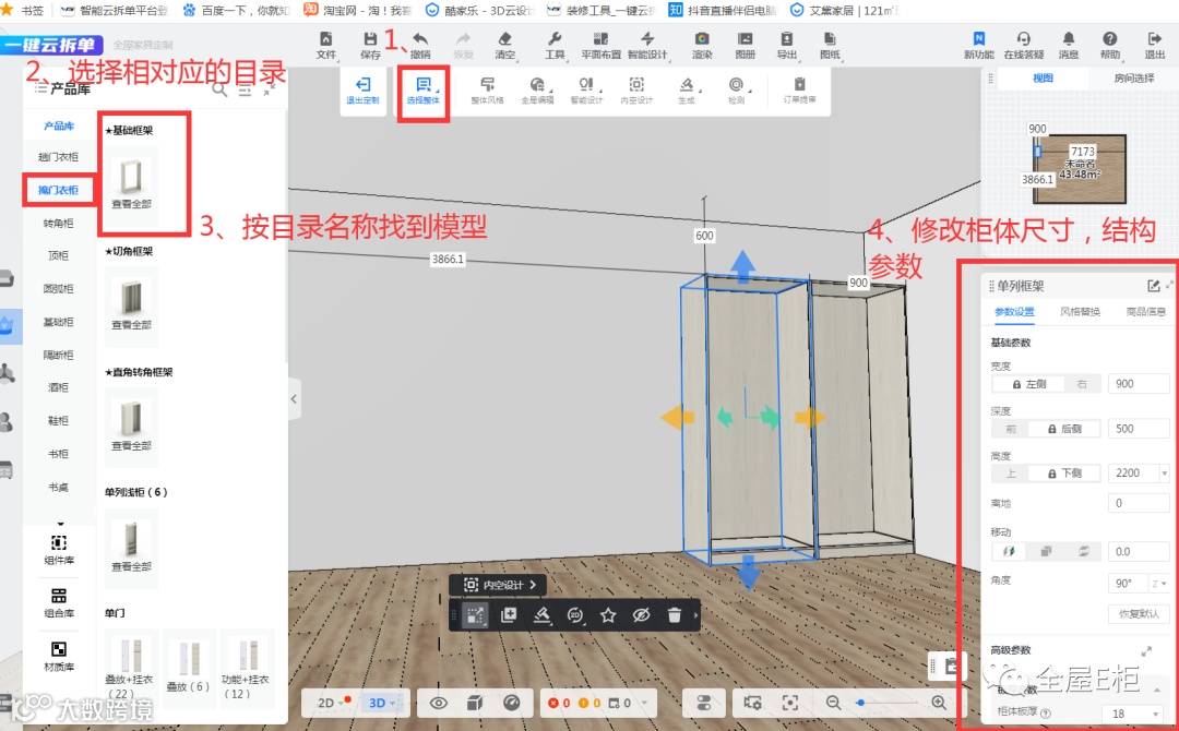 3.0 设计步骤:柜体框架--组件(内部结构)---门板--风格样式(门板款式、材质颜色)