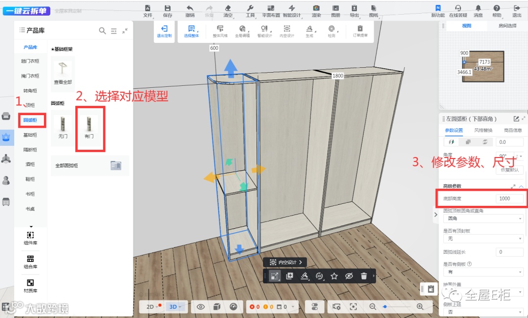 1.0 遇到特殊的模型库里没有,但是我们只是用一两次,不常用的模型,可以用自由建柜实现。