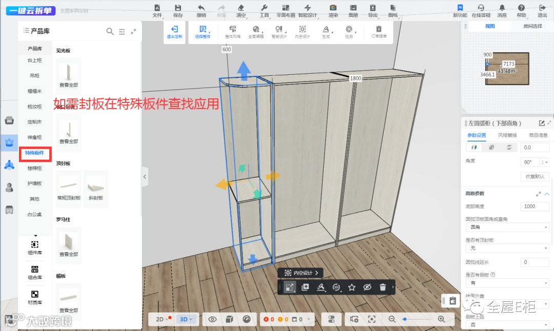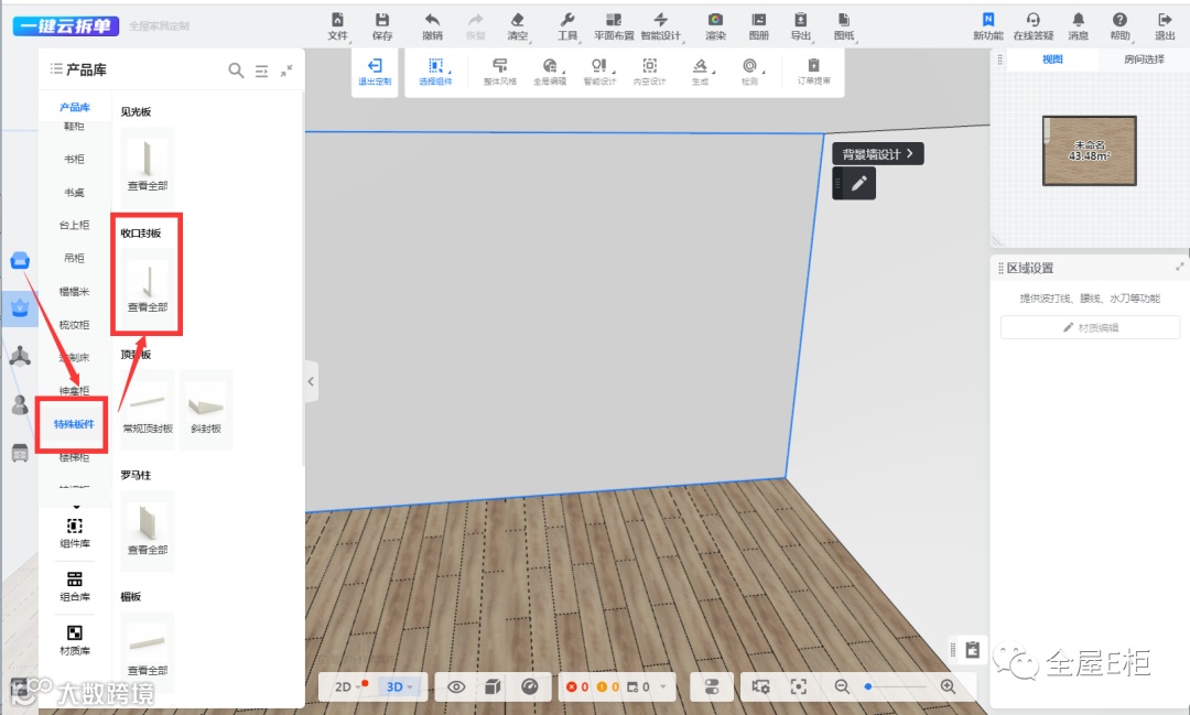 1.0 在目录特殊板件-收口封板,找到模型收口条(封板)