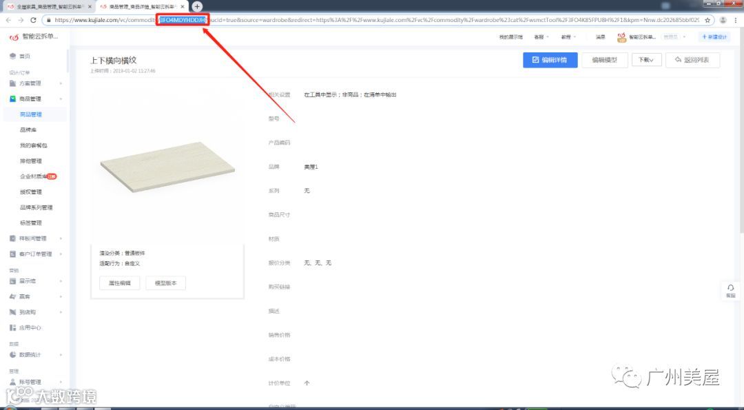 1、有酷家乐总账号的,在酷家乐商品详细页面的链接中可以获取基础板的ID,粘贴到拆单平台的基础板维护中,只要建模方式及输出设置都为横纹方式的,纹理方向都设置为“横纹”