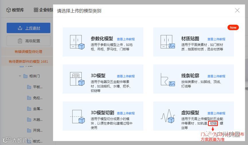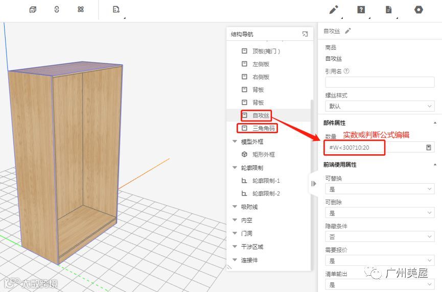 有些五金件在场景中需要体现视觉效果,比如拉手、衣通、滑轨、门铰等,此类五金我们称之为实体五金,按照酷家乐方式上传3D模型。有些五金不需要展示效果,比如螺丝、角码、感应开关、反弹器等一些辅料,只需要报价和拆单数量,我们称之为虚拟五金,酷家乐采用虚拟五金方式上传数量,建模时可以填写数量(可写判断公式),当数量庞多时不用调入多个相同的3D模型只需要输入数量即可。