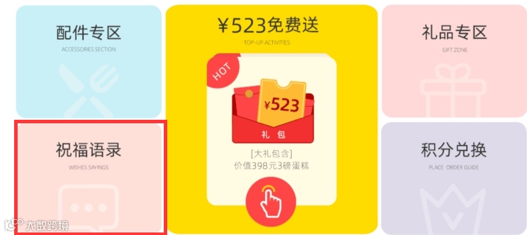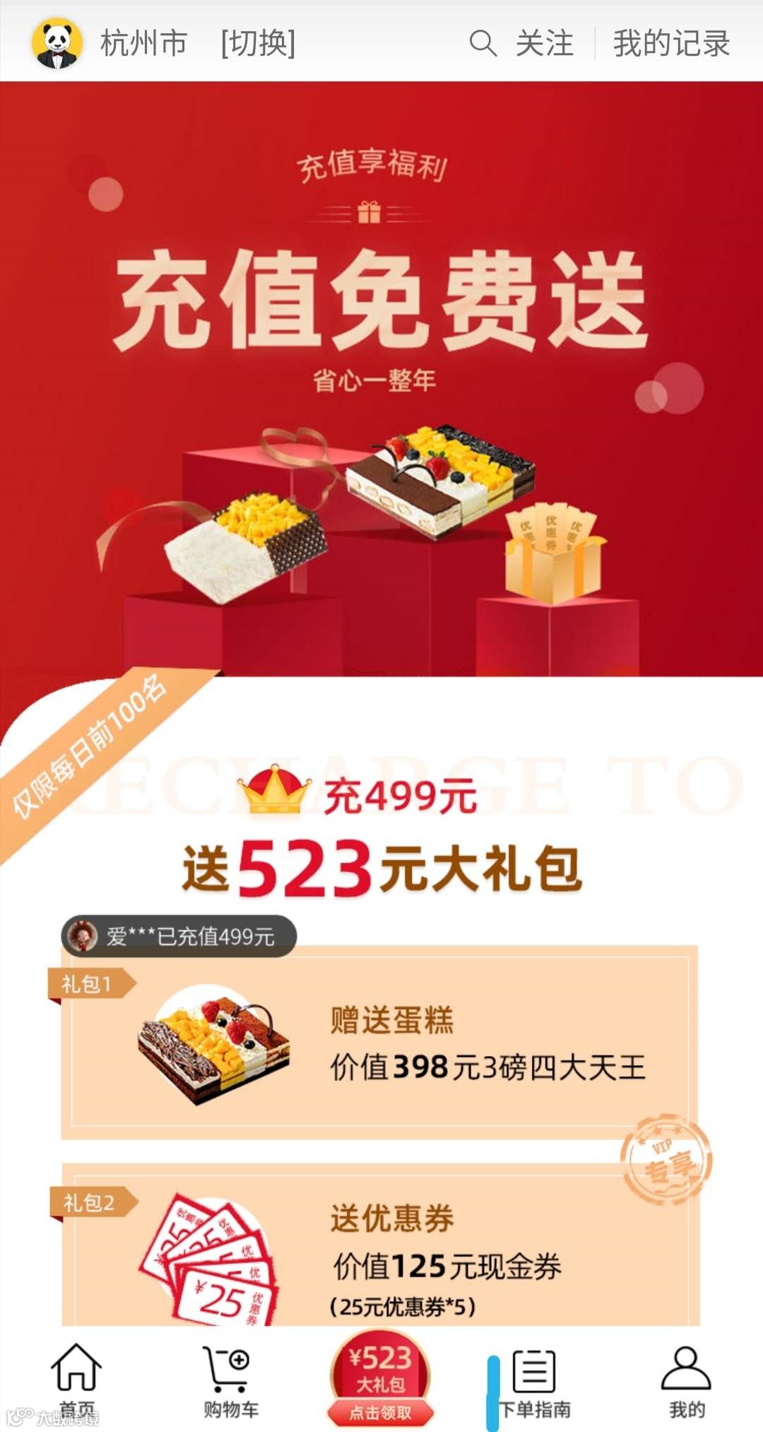 首先是购买,我们设计了1元吃蛋糕、充值大礼包等给顾客惊喜的尝试选项。而且考虑到很多人买蛋糕是送人的,熊猫不走连祝福语也提前设计好了几十条,可以个性化定制给朋友。