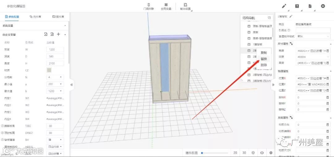 Q273:建模这里,要替换怎么找不到背板的板件?
