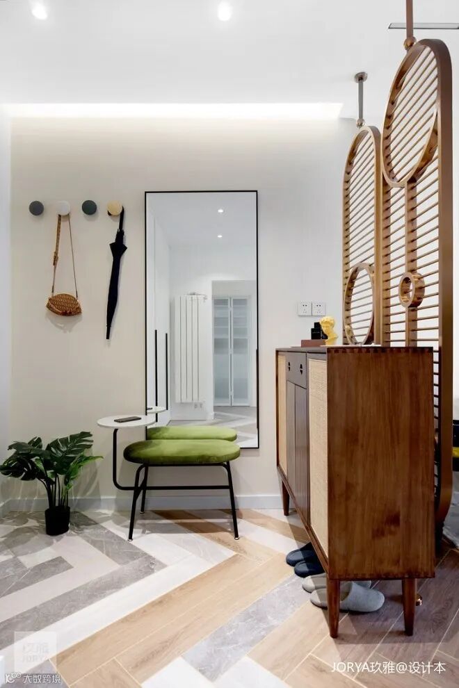 辅以换鞋凳、穿衣镜、挂衣钩,满足门厅全部需求。