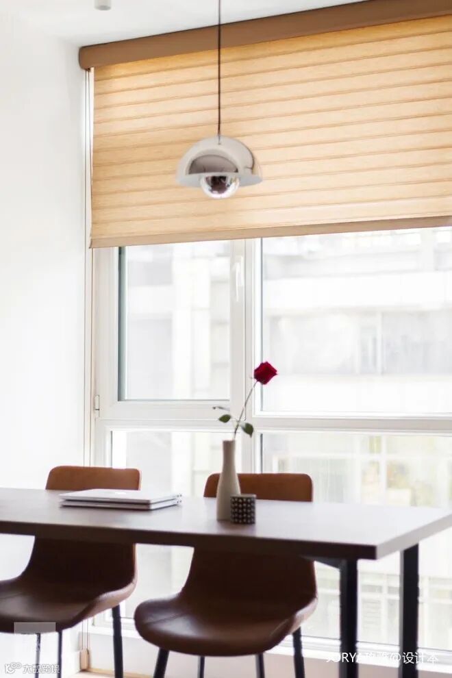 百叶窗柔和的调节室内的光线,每到傍晚,自然光和人造光顺畅交接。