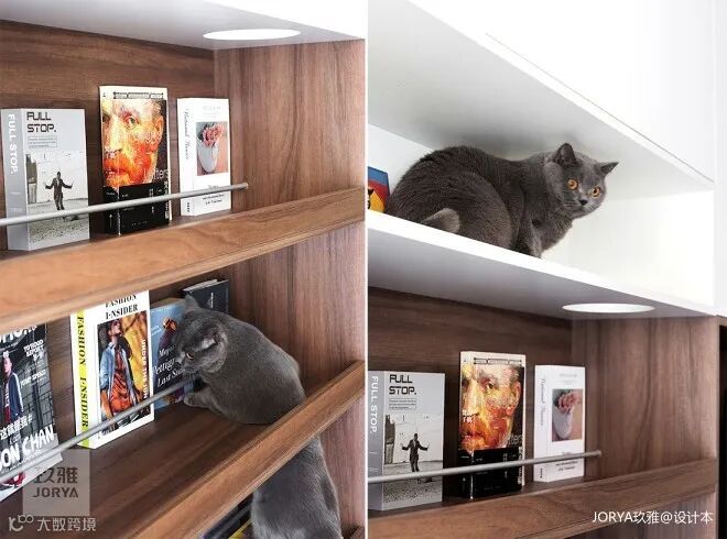 A: 那就是设计师给整的猫爬架,现在一揍两个闺女,她们就往上爬,我们得跳着打,哈哈。