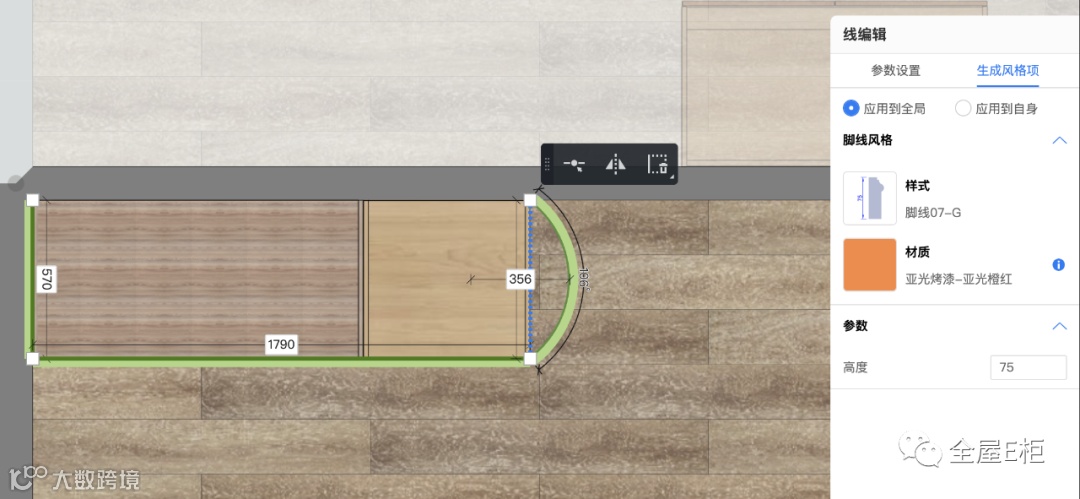 ②填写的生成风格项可仅作用于自身,或是当前场景里所有的线条,通过顶部【应用到全局】或【应用到自身】来进行切换