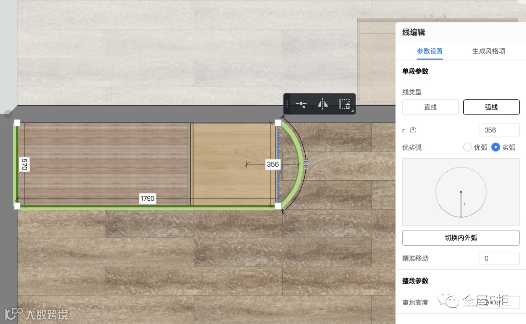 线支持切换为:直线/弧线,在弧线时,也可填写更多的参数;